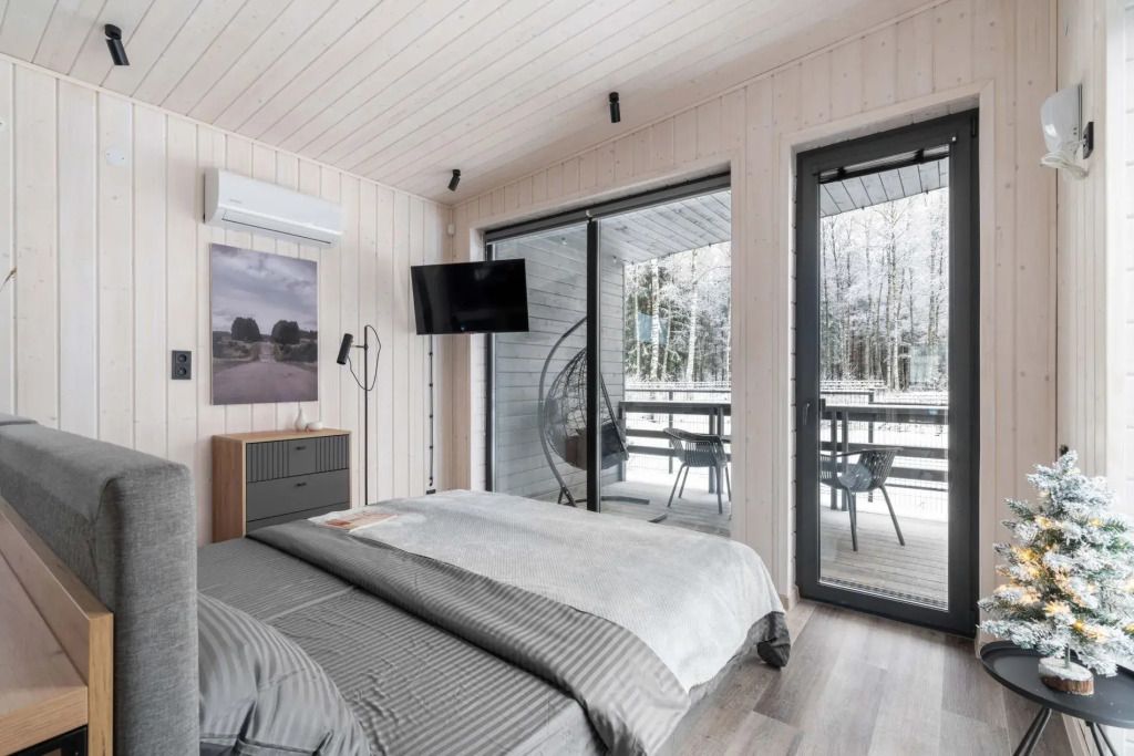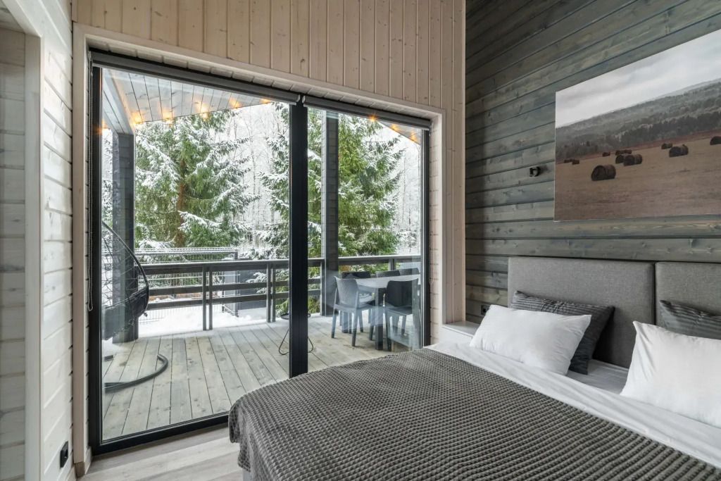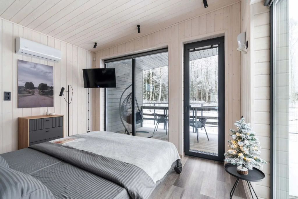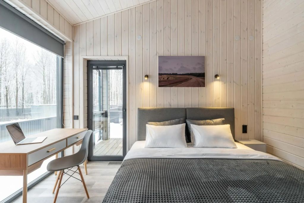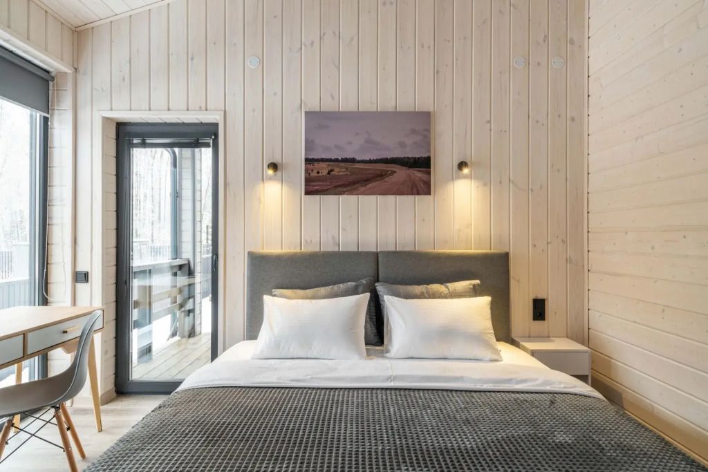 Двухместный коттедж с красивым видом из окна двуспальная кровать
