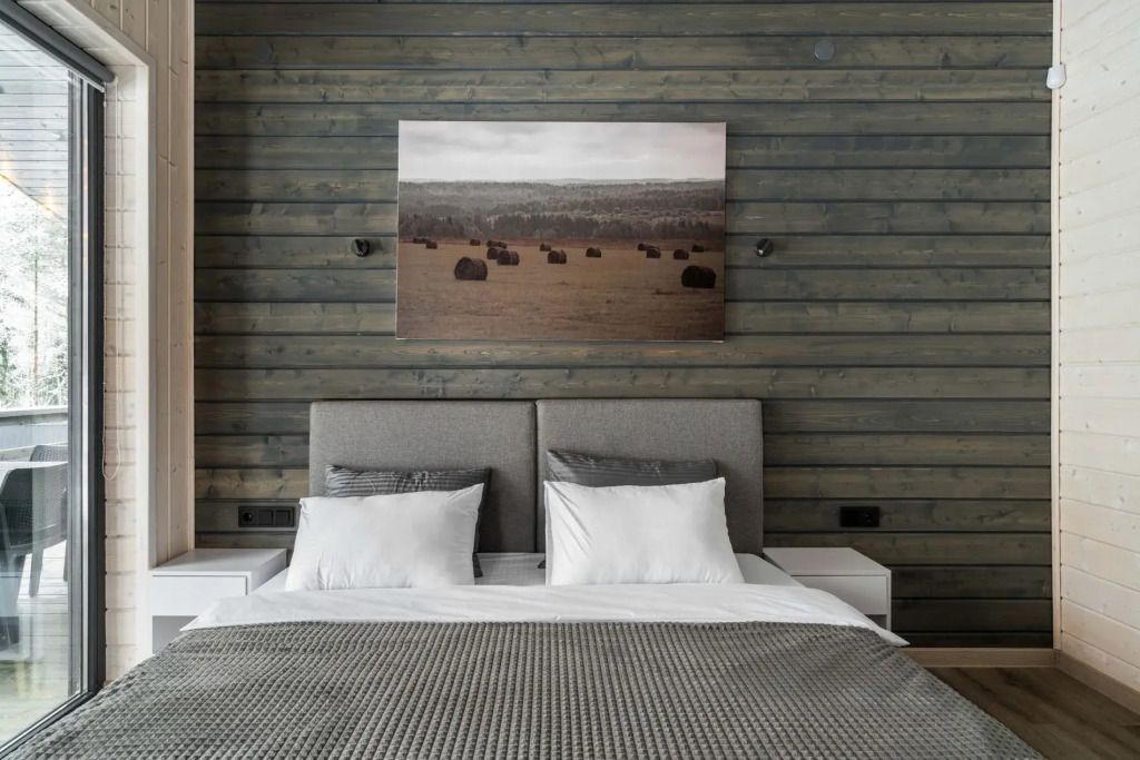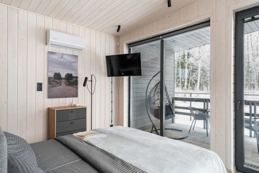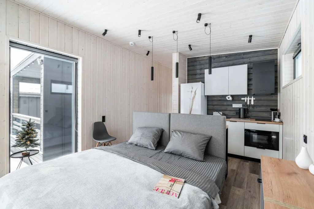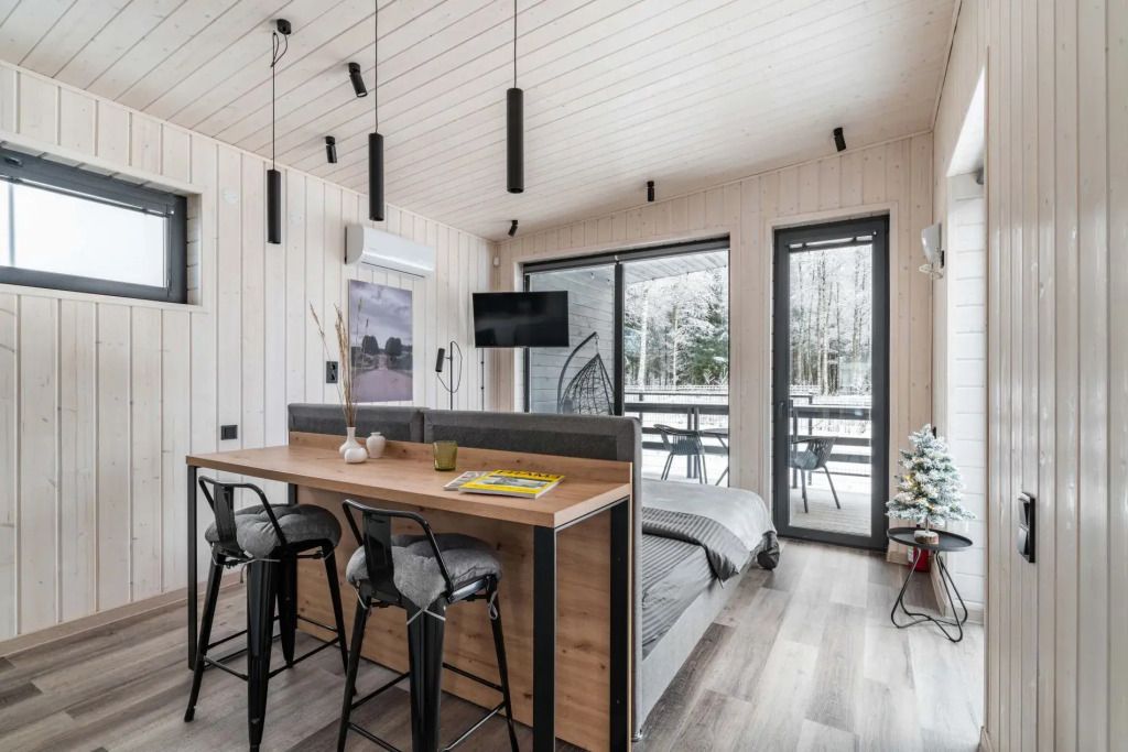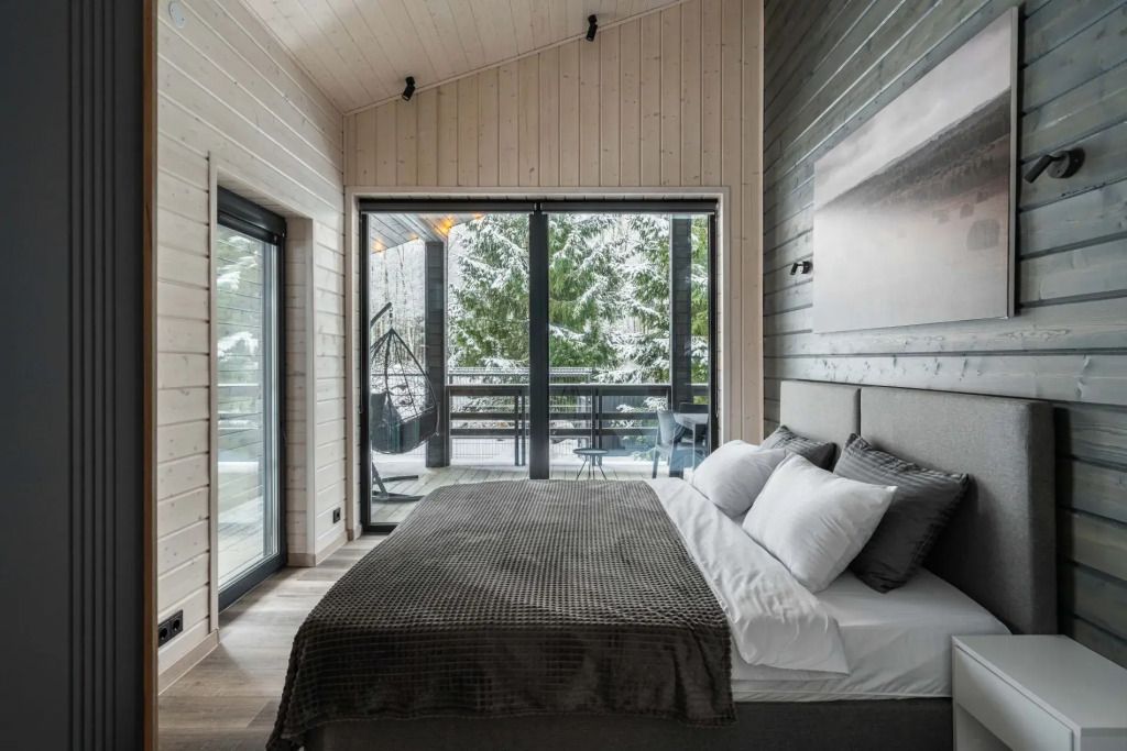 Двухместный коттедж с красивым видом из окна двуспальная кровать