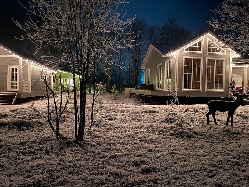 В доме две спальни, кухня-гостиная, совмещенный санузел. Для проживания и отдыха небольшой компании. Есть условия для удаленной работы (ксерокс, принтер. письменный стол).
