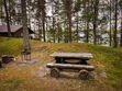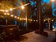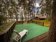 Коттедж с отдельной спальней и террасой. Вид на озеро. Свой мангал и атмосферный массивный стол для трапезы на открытом воздухе.