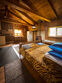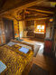Коттедж с двумя отдельными комнатами. В одной комнате одно двуспальная кровать, в другой — две односпальных. Маленький камин и своя терраса.