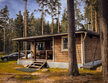 Самый небольшой, но любимы многими нашими гостями, коттедж с, наверное, самым лучшим видом и с максимальной приватностью пространства. Он будто потерялся в лесу. Вид на озеро. Свой мангал и атмосферный массивный стол для трапезы на открытом воздухе.