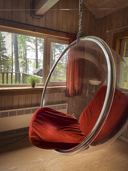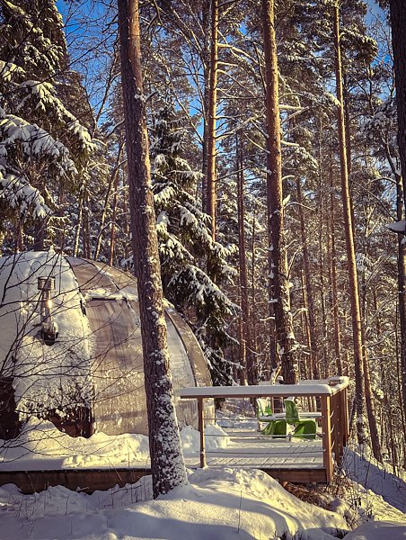 Сфера стоит на склоне, прямо на берегу озера, среди корабельных сосен, собственная терраса, горячая купель фурако (опцилнально), мангал.
