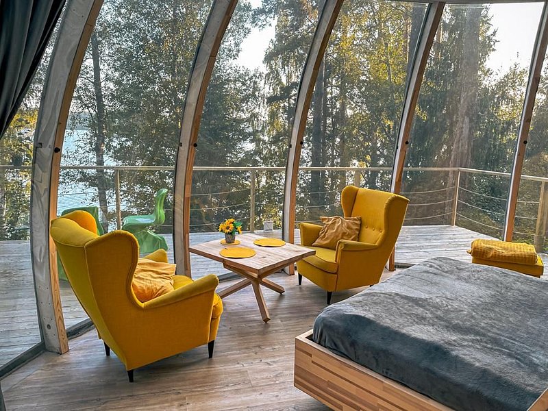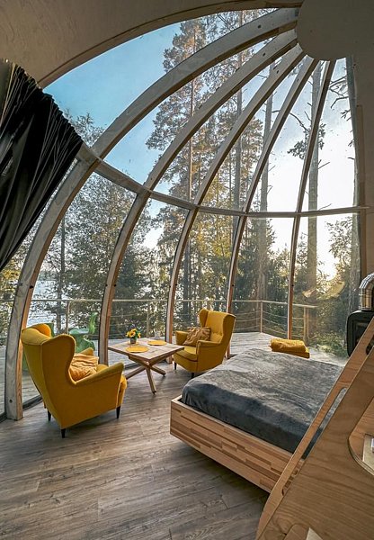 Оказавшись в сфере вы испытаете эмоцию, которую формирует нестандартный формат конструкции, которая максимально интегрирована в природу, но создает ощущение защищенности внутри.