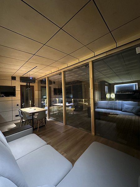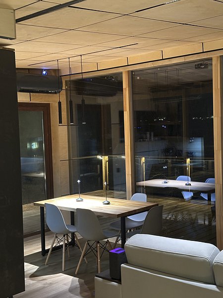 Панорамный дом на 4 человек с большой террасой стоит на склоне с видом на озеро. Это самый новый и технологичный дом, одновременно один из самых уютных и комфортных.