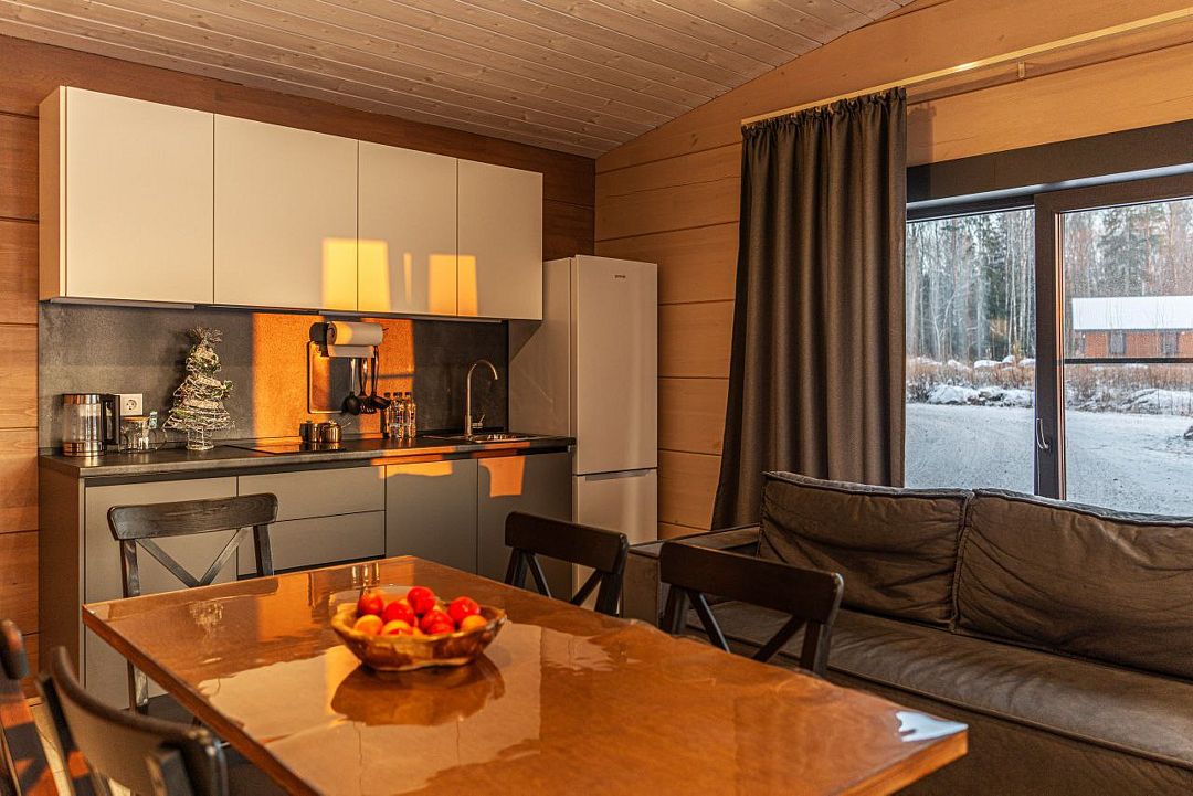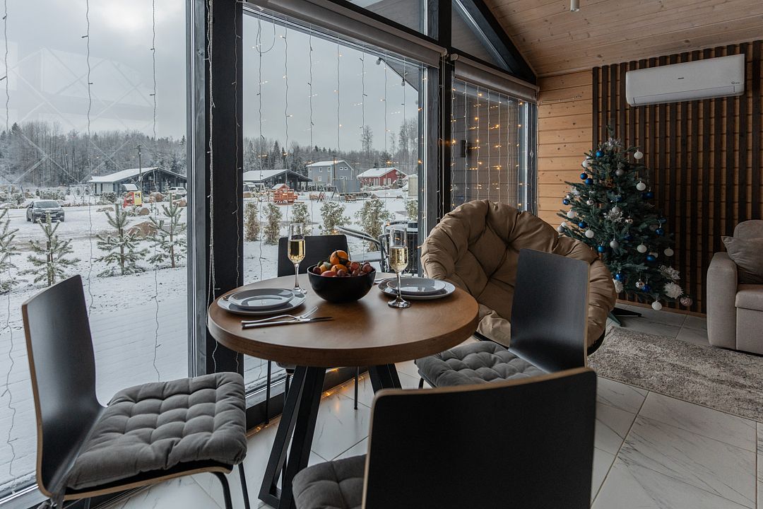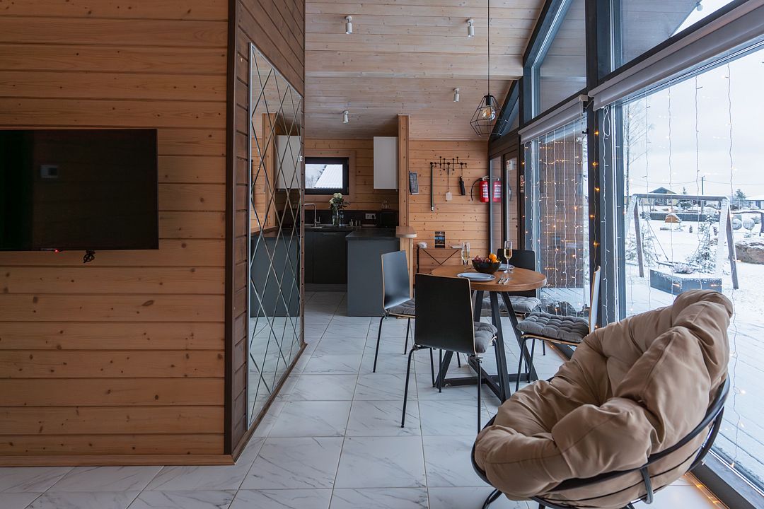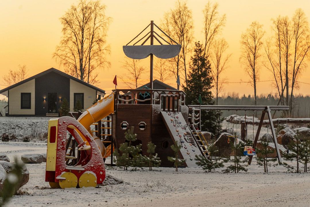 На территории клуба имеется множество вариантов размещения: дома у воды и немного отстоящие от береговой линии. Часть домов и территория все еще находятся на стадии строительства и благоустройства. Все коттеджи были построены в 2023 году, они светлые, уютные, с большими панорамными окнами и просторными террасами. Для каждого дома предусмотрена отдельная мангальная зона.