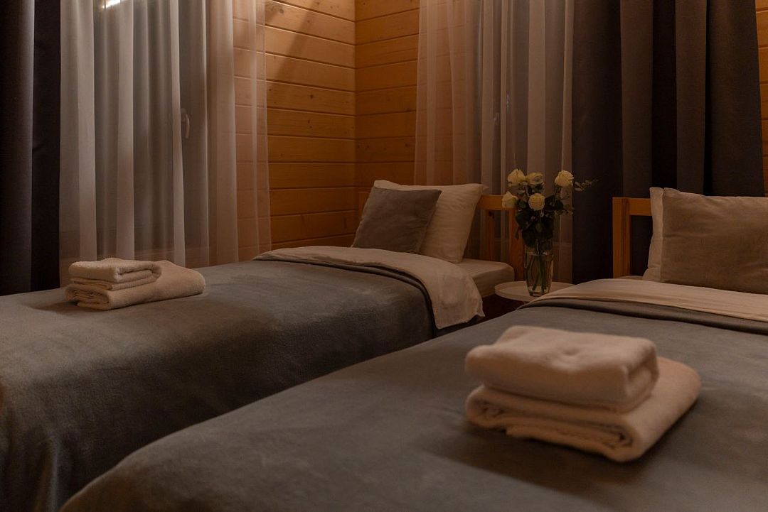 В доме есть всё необходимое для парения, средства гигиены, полотенца, тапочки, полотенца, килты, подстилки, шапочки. Халат можно спросить на ресепшен.