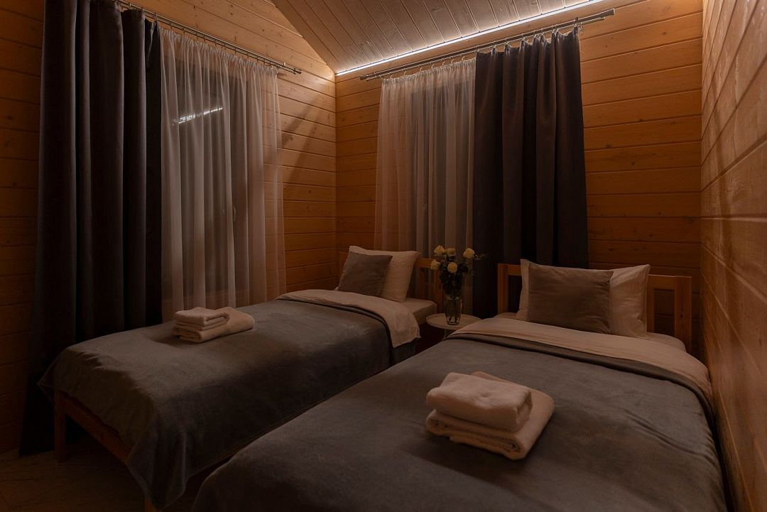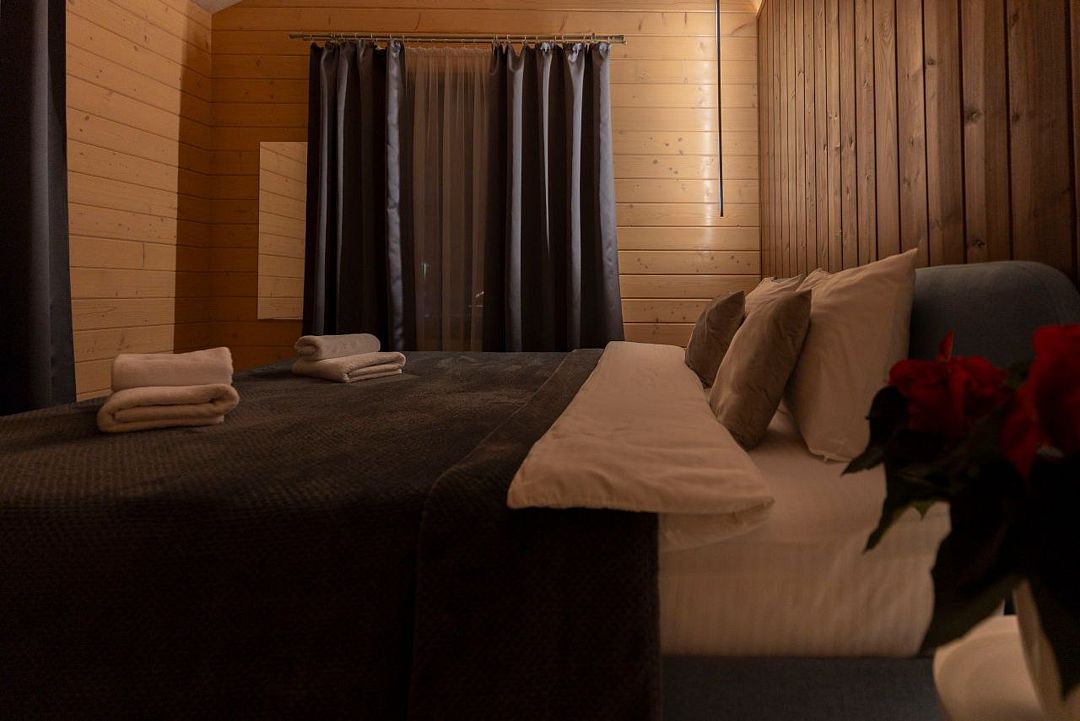 - в ванной комнате средства гигиены категории ЭКО (гель-мыло, гель для душа, шампунь, зубные щетки с пастой, ватные диски и палочки, пилочка для ногтей), 2 халата, банные полотенца;