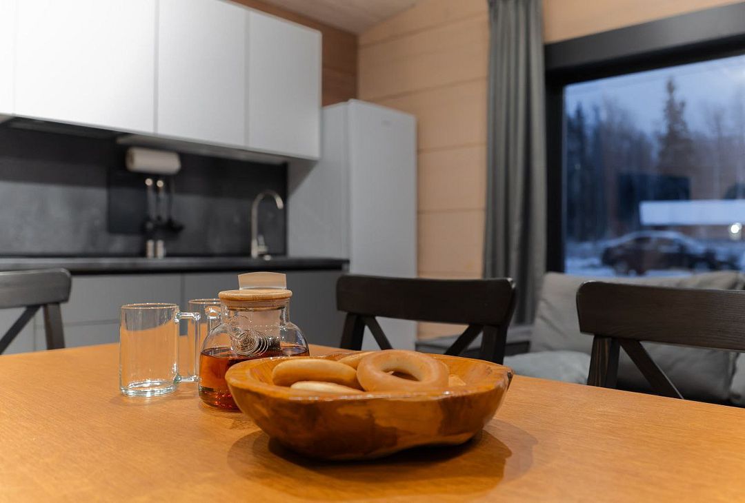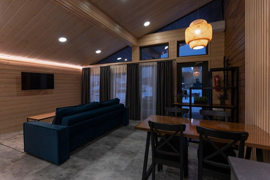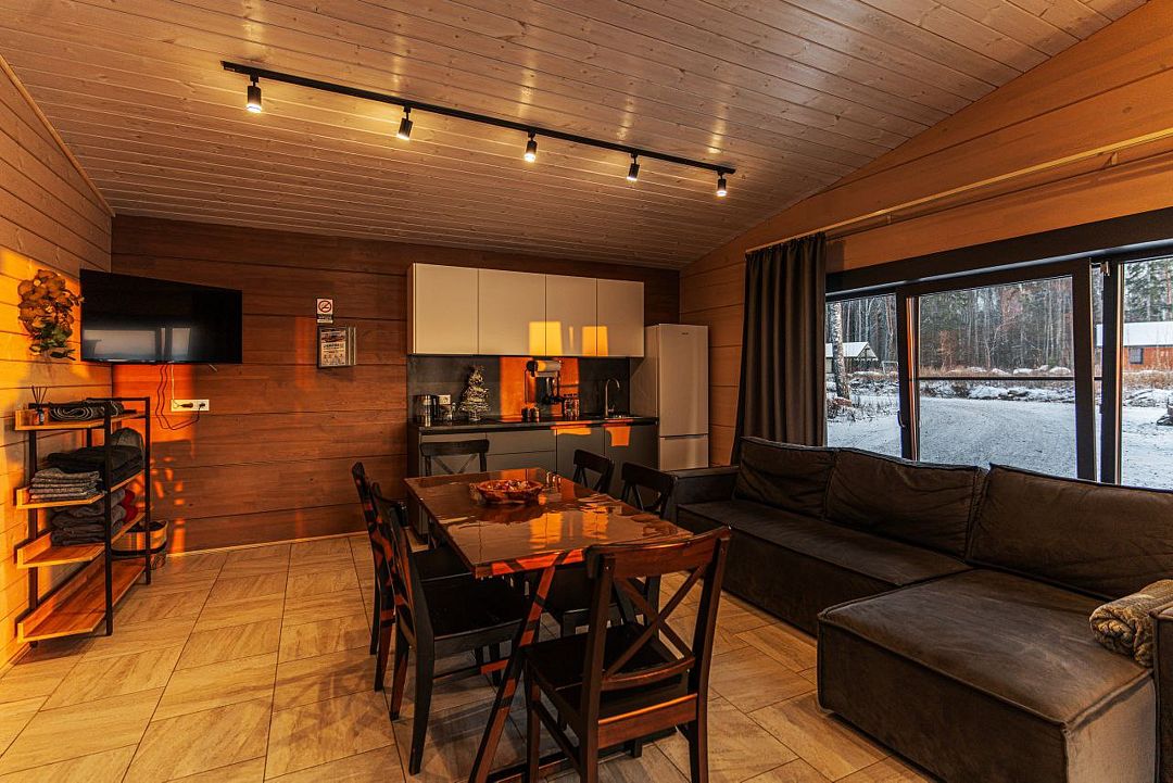 К удобству гостей русская парная на дровах, просторная комната отдыха с кухней, раскладной диван на 2 спальных места, душевая и санузел.
