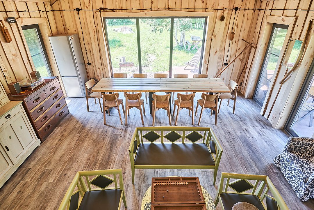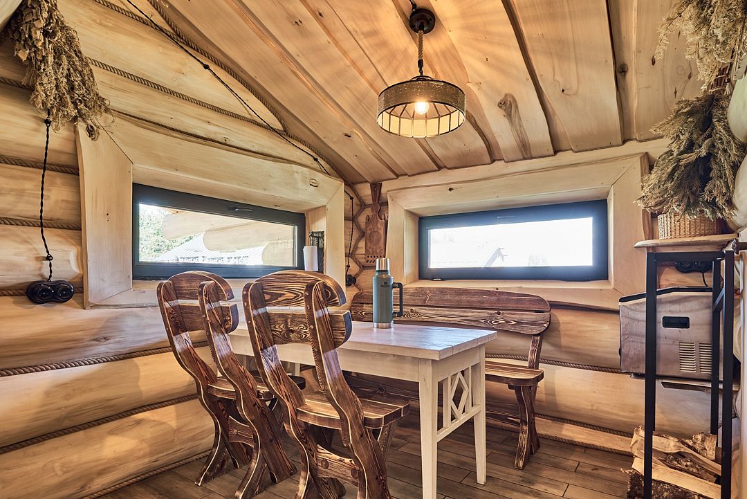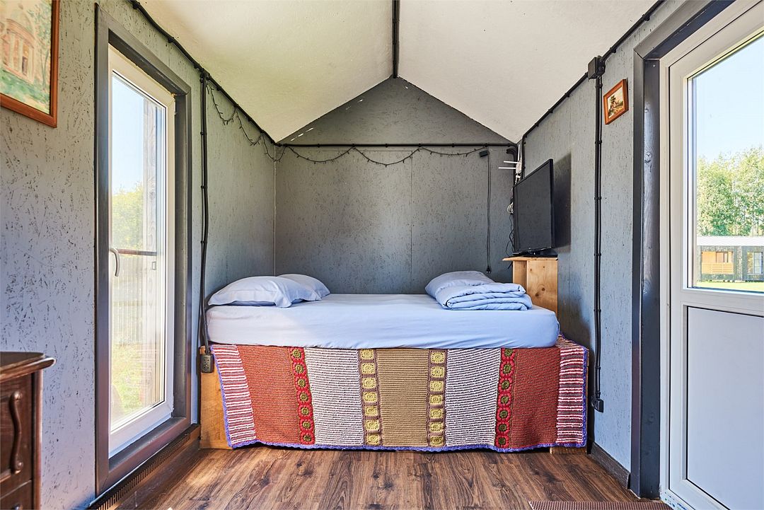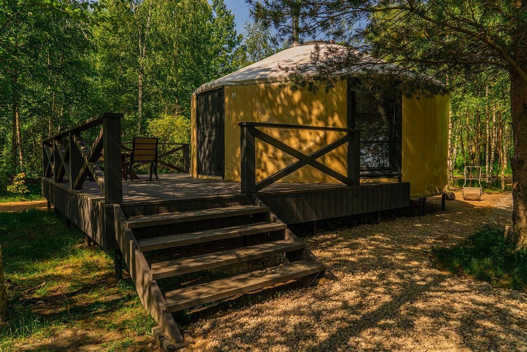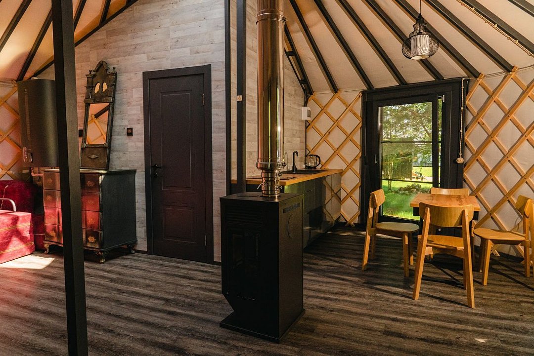 Помните, как в детстве мы отпрашивались у родителей переночевать у друга или подруги? Нам казалось это верхом свободы и взрослости. Сейчас мы уже не так охотно покидаем свои жилища и еще менее охотно остаемся у кого-то ночевать. Почему так происходит? Каждый день окружает нас пустяковыми мелочами, к которым быстро привыкаешь и перестаешь замечать. Нам тепло от мысли, что всё на своих местах - только руку протяни. Но стоит лишиться одной из таких мелочей, как весь привычный уклад рушится. Что уж говорить о ночевке вне дома? А если еще и аврал на работе и усталость мешает заснуть? Или просто хочется тишины, чистого воздуха и никаких контактов с внешним миром? Запереться дома, где, по слухам, и стены лечат? Можно и так. А можно позволить себе полностью перезагрузиться, махнув на пару деньков в наш уютный гостевой домик на базе отдыха Тишь да Камыш. Мы не обещаем, что на полочке в ванной будет стоять ваш любимый крем, но максимальный комфорт, чистоту, вкусный ароматный чай и гостеприимство гарантируем. Наш вместительный гостевой дом принимает до 5 гостей. Пространство продумано таким образом, чтобы “совы” и “жаворонки” не нарушали покой друг друга - 2 удобные спальни, общий зал, кухня и просторная терраса, где так приятно утром выпить чашечку кофе с круассаном. Чтобы вы ни в чем не нуждались, в доме есть всё необходимое: стиральная машина, плита, холодильник, утюг, телевизор и много другой приятной бытовой техники. Во всем доме установлены теплые полы, поэтому вы можете быть спокойны за своего малыша, если приедете всей семьей. Пусть ползает на здоровье! А какой же уют без любимого питомца?! Мы в Тишь да Камыш обожаем животных и уверены, что друзья наши меньшие не должны с нами расставаться. Вам не нужно думать, кто выгуляет вашего Полкана или почешет за ухом пушистую Мурку. Приезжайте все вместе! И, конечно, обязательно попарьтесь в нашей настоящей русской бане на березовых дровах. Любопытно, как скоро вы захотите повторить такой незабываемый уикэнд? Наши гости говорят, что подумывают об этом, не успев уехать.Юрта