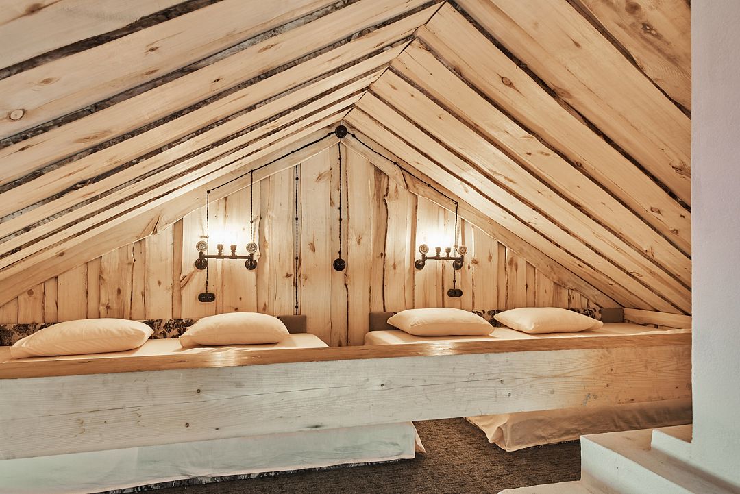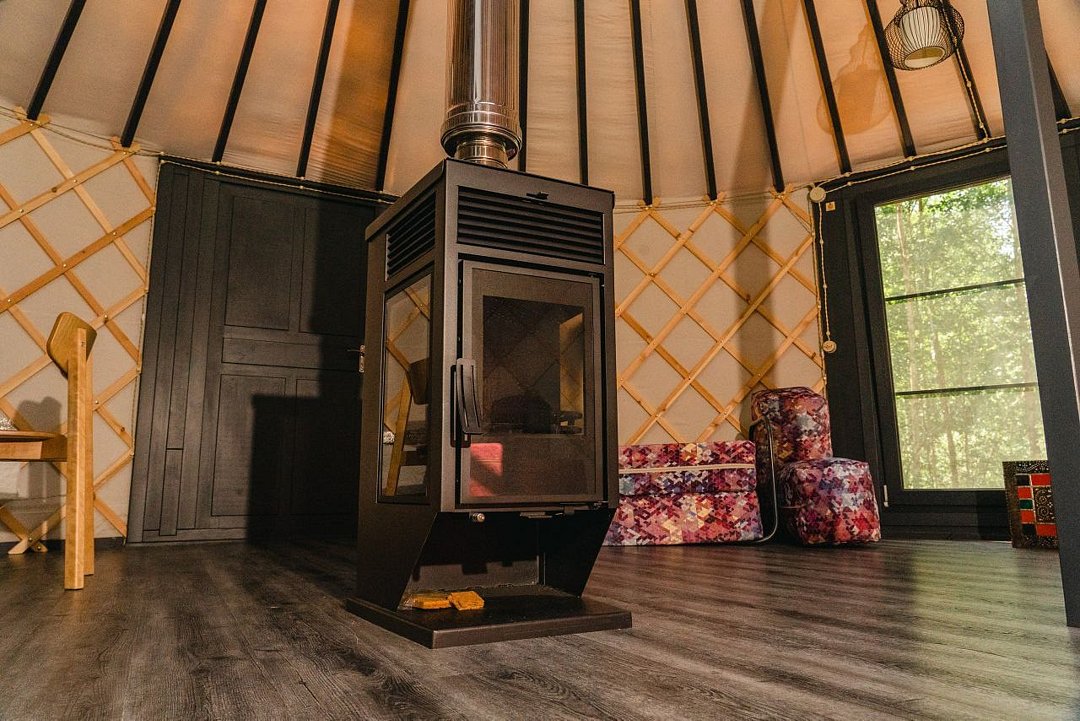 плита для приготовления пищи, двуспальная кровать, две полутораспальные кровати, мини-холодильникВ юрте