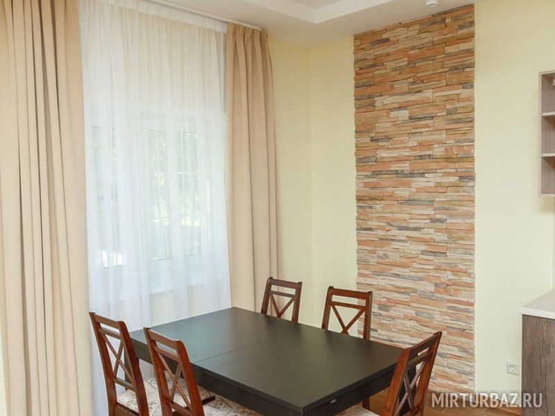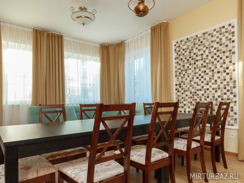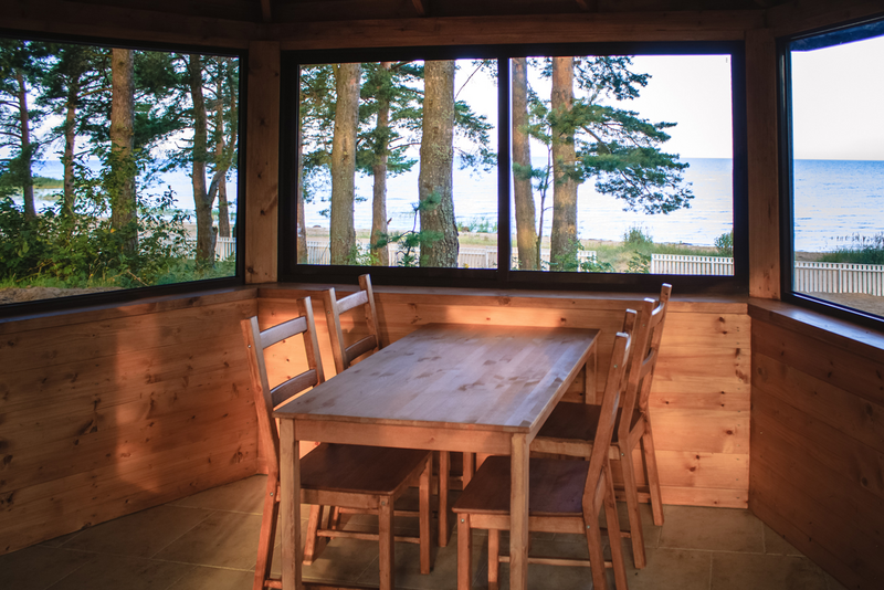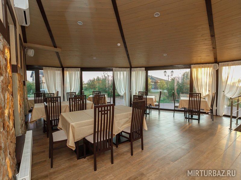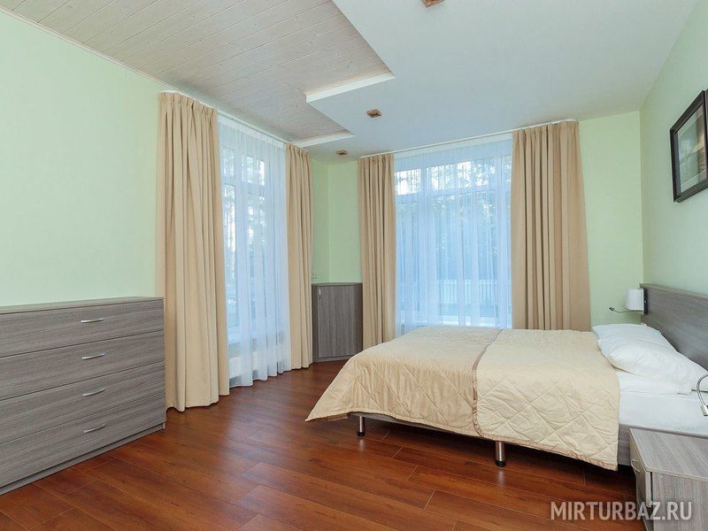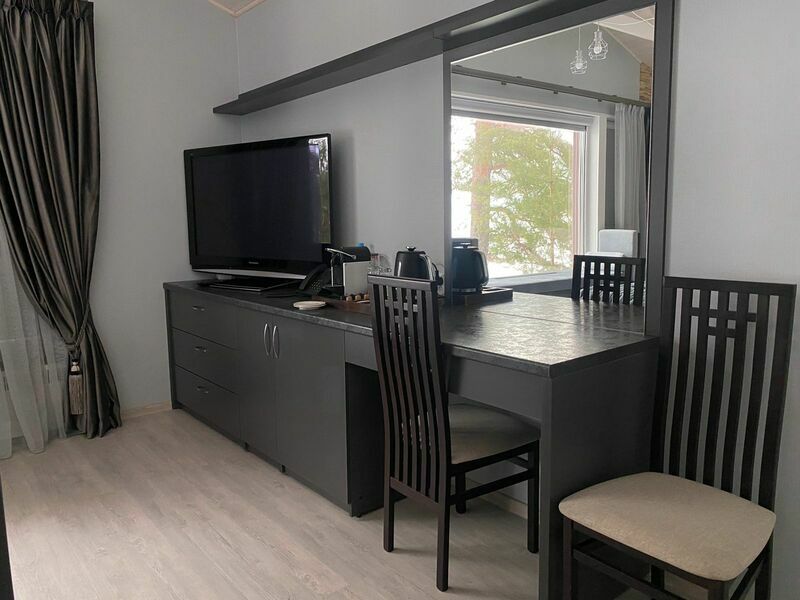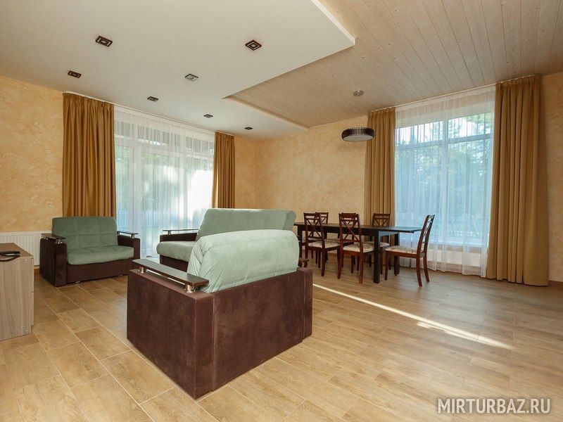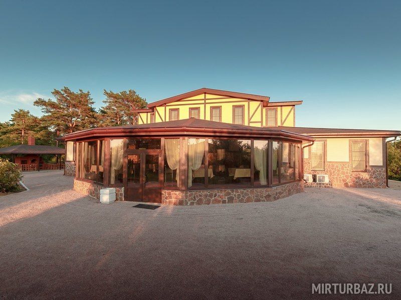 Семейный отдыхДостоинстваПрекрасное расположение, очень чистая территория. В основном корпусе и номерах убирают постоянно и не смотря на то, что рядом песчанный пляж, в корпусе не песчинки. Великолепный ресторан с видом на Ладогу, в которм приятно посидеть вечером и посмотреть закат через панорамные окна. Отзывчивый и внимательный персонал. Место подходит как для отдыха всей семьёй, так и для спокойного уединения. Если вам нужна тишина и прекрасные виды на Ладогу, то рекомендую взять отдельный домик. Хотя прекрасные виды на Ладогу есть и из номеров основного корпуса.