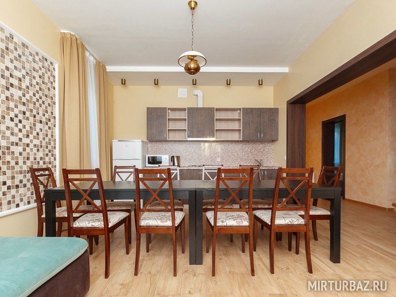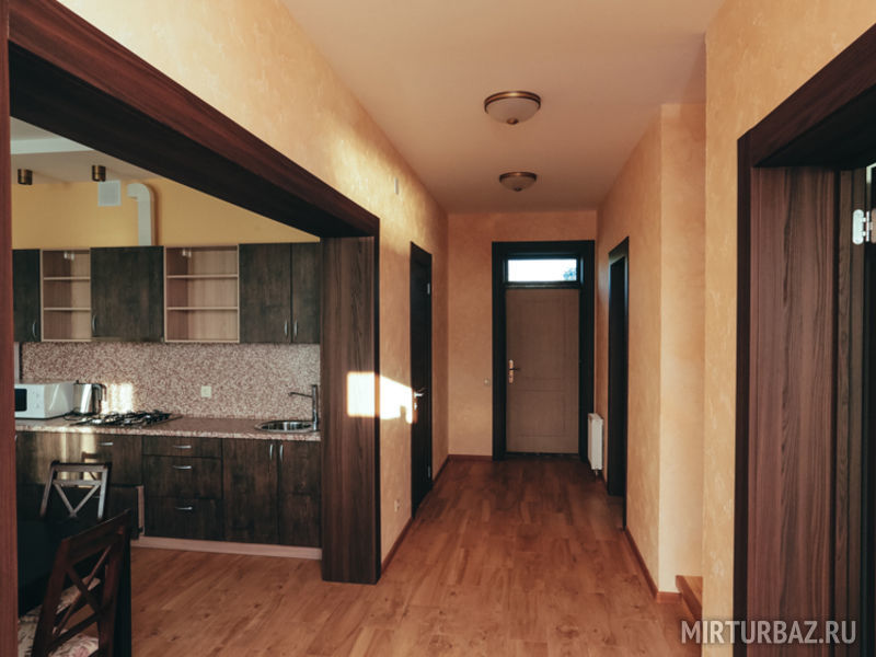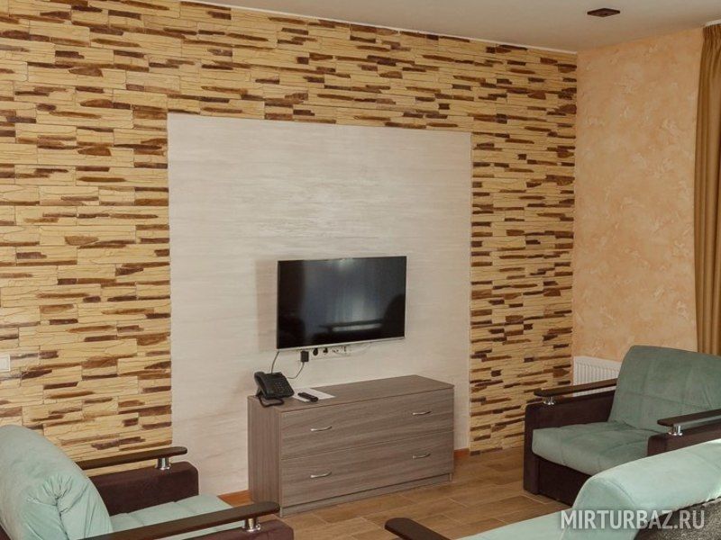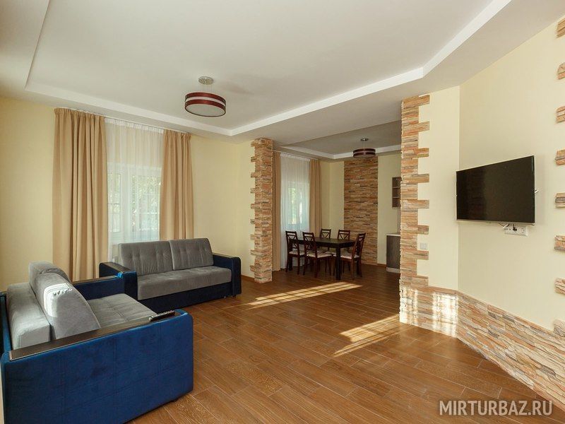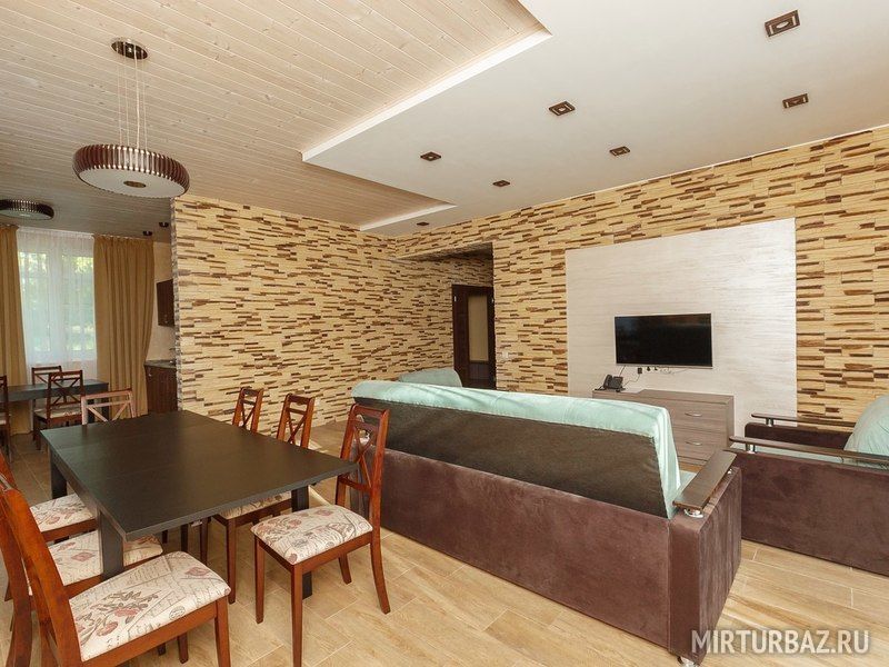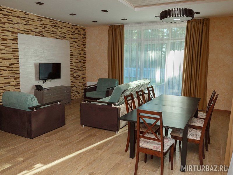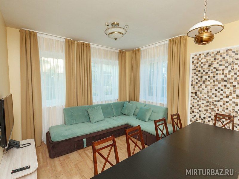 Дополнительные места: раскладывающийся двухспальный диван и два односпальных кресла.