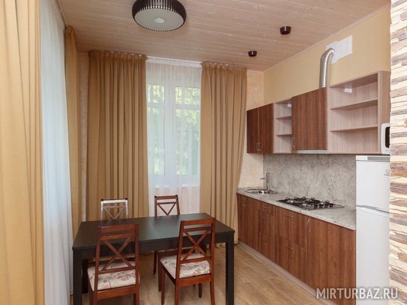 Одноэтажный коттедж находится в живописном зеленом месте среди сосен и цветов. Коттедж оснащён 2 спальнями, 1 санузел , гостиная и кухня (холодильник, плита, чайник, СВЧ печь, посуда).