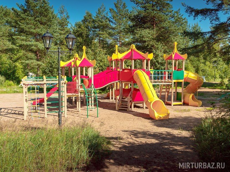 Путешествие с паройРекомендуюБыли на турбазе двое суток, в июле 2023. Нам очень понравилось и хотелось бы вернуться. Про домики ничего сказать не могу, мы останавливались в номере гостиницы, номер маленький, но вполне уютный. Холодильник есть, шкаф, тумбочки и большое кресло. Разноплановое освещение. Единственное, нам не хватало журнального столика. Чисто, очень удобная и просторная ванная комната. На общей площадке куллер с водой. Ресторан очень понравился, реально вкусно готовят, свежая рыба и по адекватным ценам. Территория не большая, особо там делать нечего. Есть СПА и баня, но мы там не были. Зато песчаный пляж в 10 шагах, метров на 200 и почти никого нет. Вход в озеро мелкий и поэтому вода достаточно теплая. При нас территорию убирали каждое утро, было чисто и на пляже мусора не было. Для детей большая и красивая площадка. Если проехать к каналам, то там можно порыбачить. При нас была у кого-то вечеринка с запуском петард, но как-то недолго и не напряжно. Возможно ввели ограничения по времени, т.к. было много семей с детьми. В целом рекомендую.