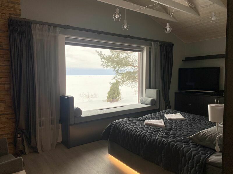 Одноэтажный коттедж находится на берегу Ладожского озера. Коттедж оснащён 3 спальнями, 2 санузлами, гостиная и кухня (холодильник, плита, чайник, СВЧ-печь, посуда).
