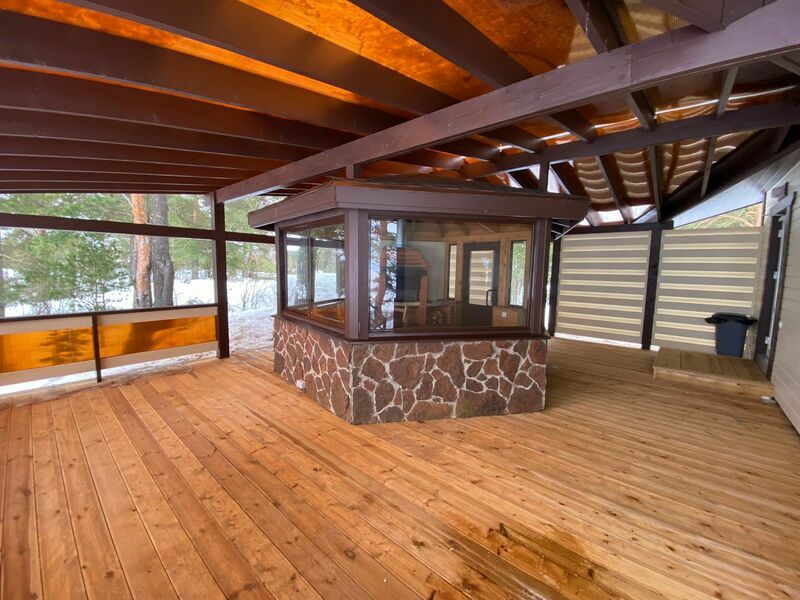 Двухэтажный коттедж находится на берегу Ладожского озера. Коттедж оснащён 5 спальнями, 3 санузлами, гостиная и кухня (холодильник, плита, чайник, СВЧ-печь, посуда).