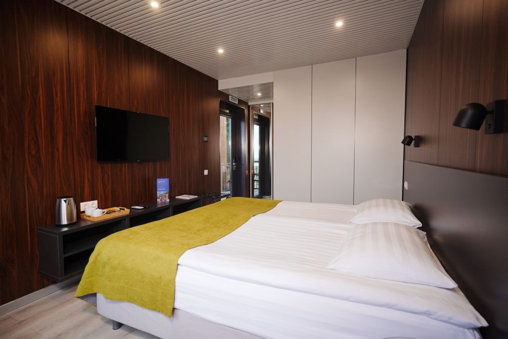 Персонал на ресепшн обучен и приветлив. Нас заселили ранее обозначенного в бронировании времени (что приятно), т.к. были места. Сразу предупредили, что время уборки можно заранее обговорить, чтобы подстроиться под график ребенка. Сразу отмечу, что на следующий день позвонили в номер, уточнили, когда подойти убрать можно. Через день клининг пришел в тоже время, что было указано накануне, мы попросили подойти через час, что и было сделано. Уборка хорошая, нареканий нет. Территория ухоженная, красивая. У этой точки одно кафе и винная комната. Сразу предупреждают, что в винную гостиную с детьми можно только до 18 часов. С территории выход к воде, пляж хороший.