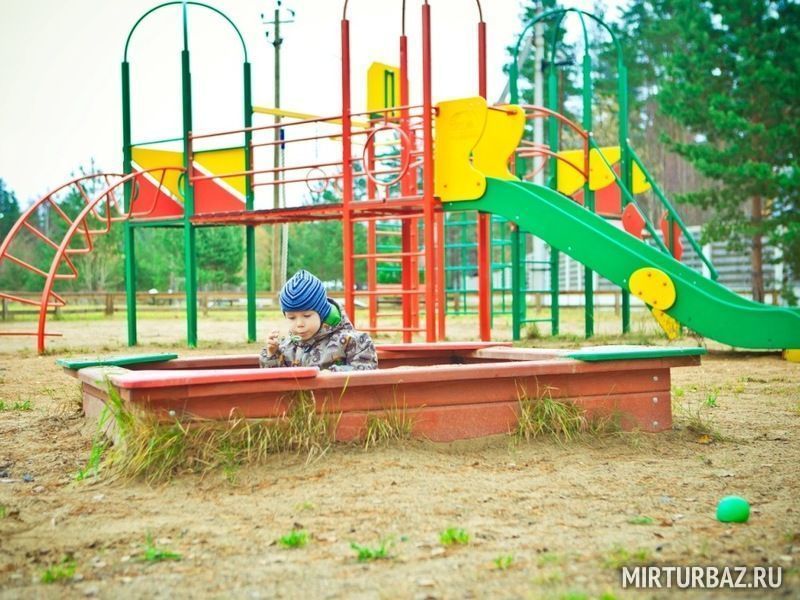 На территории TRAVA оборудована специальная детская площадка с горкой, качелями и песочницей, на просторах которой запросто можно выстроить собственный песчаный город.