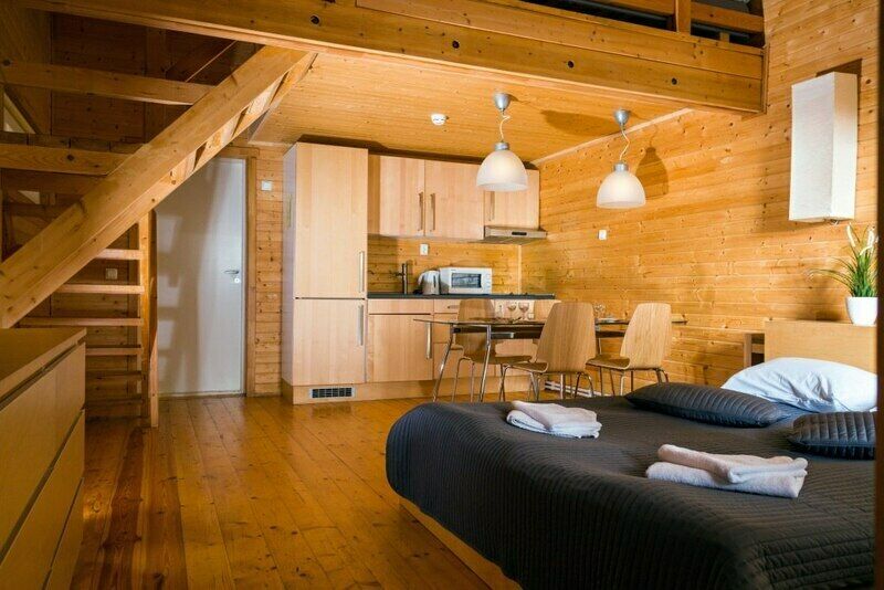 Для размещения гостям предлагаются четырёх и восьмиместные коттеджи, оснащённые по последнему слову техники, с тёплыми полами, гидромассажем, Wi-fi и другими благами.