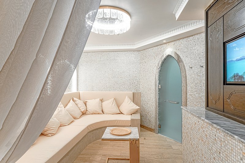 - Турецкий мыльный SPA (45 мин.). SPA-уход проводится в персональной мыльной в хаммаме и включает в себя сеанс скрабирования рукавичкой кессе по телу в мыльном облаке и завершающий ароматный уход — 6400 ₽;