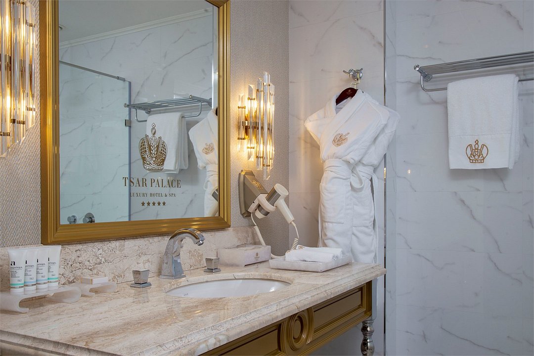 Интерьеры стандартных номеров Tsar Palace Luxury Hotel & SPA выполнены в светлых тонах: благодаря пастельным оттенкам создается атмосфера уюта, тепла и комфорта. Номера имеют современное технологическое оснащение и обладают уникальным дизайном, разработанным специально для Tsar Palace Luxury Hotel & SPA специалистами мирового уровня. Окна номеров стандартной категории выходят в атриум отеля.