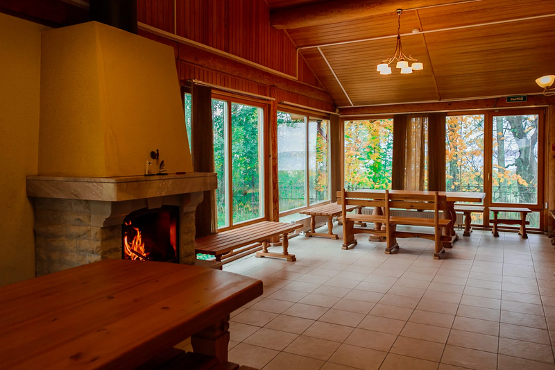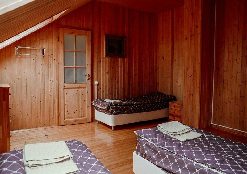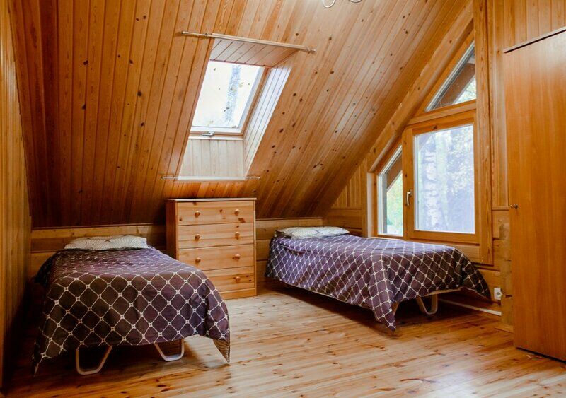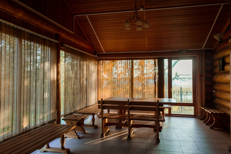 База отдыха представляет собой деревянные коттеджи на закрытой территории в 12 га, подходящие под различные компании от 4 до 30 человек.