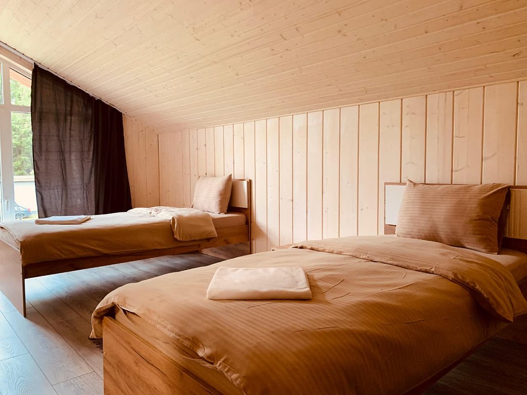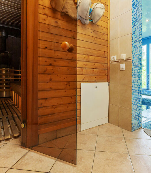 В спа-комплексе имеется комната отдыха с удобным диваном, столом и креслами, большой телевизор, дровяной камин, вместительная сауна на 10 человек, крытый бассейн 3x5м с подсветкой и противотоком, купель с холодной водой, 2 душевые, раздевалка, санузел.