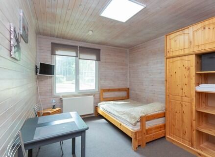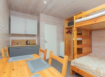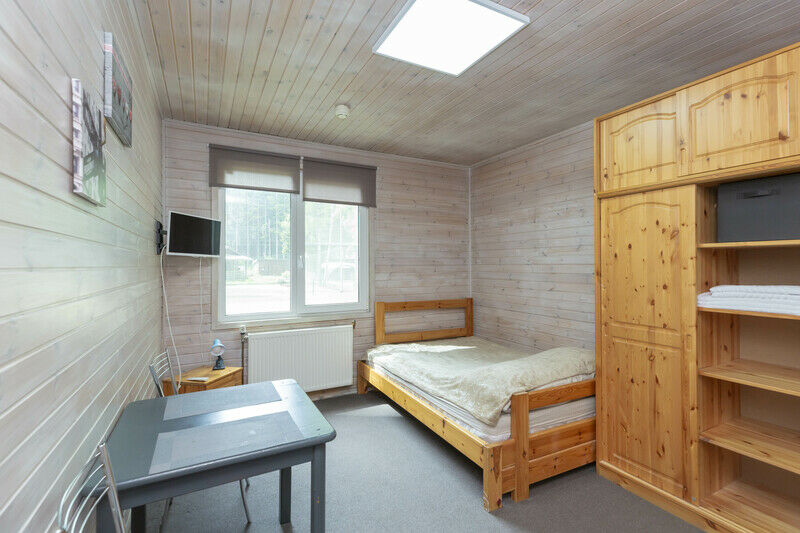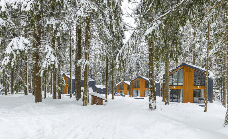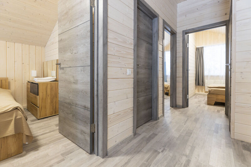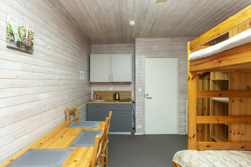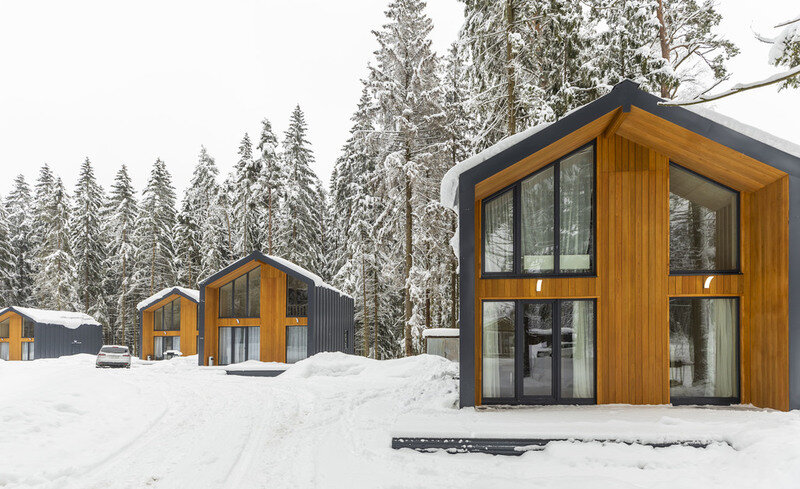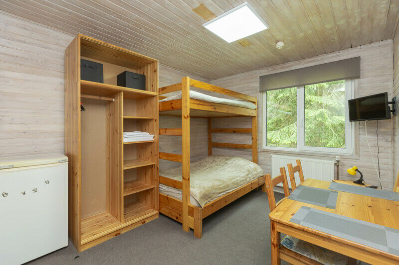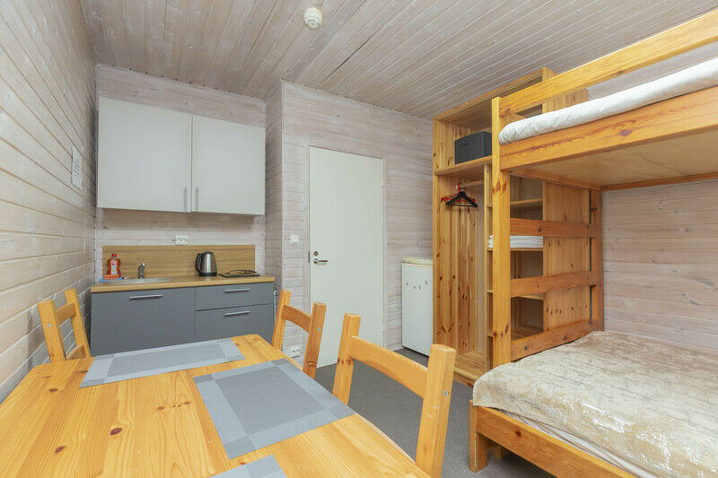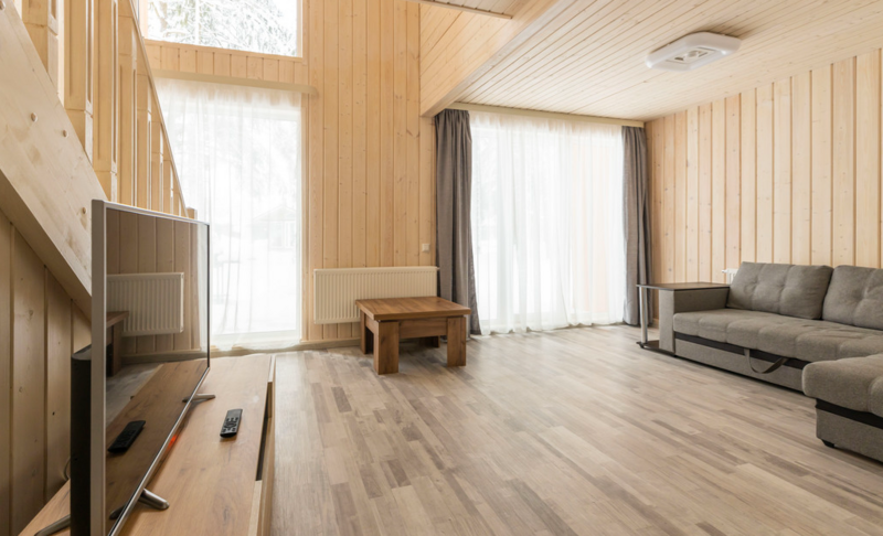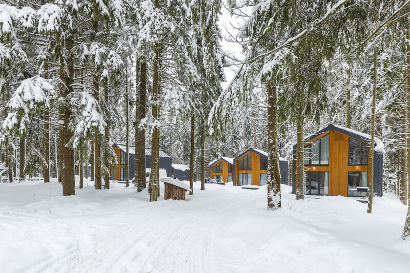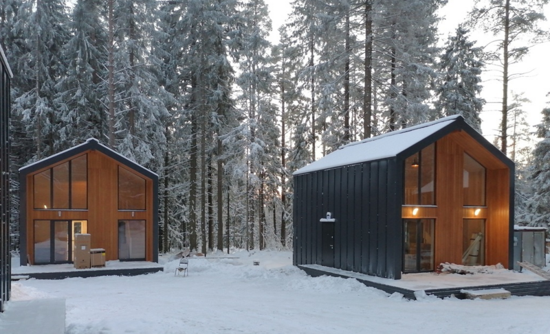 В домиках установлены новые кухни с индукционной плиткой и набором необходимой посуды, холодильник, стол со стульями, жк телевизор с цифровыми каналами. Санузел с унитазом, раковиной и душевой кабиной. В санузле установлены теплые полы. Имеется небольшой коридор(прихожая) и помещение для спортивного инвентаря. Отопление централизованное.