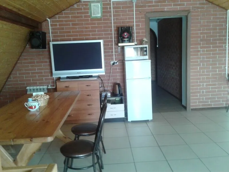 В комнате есть телевизор (20 каналов), музыкальный центр, микроволновая печь, электрический чайник, посуда.Кухня-столовая- находится на 1 этаже, в ней все необходимое: