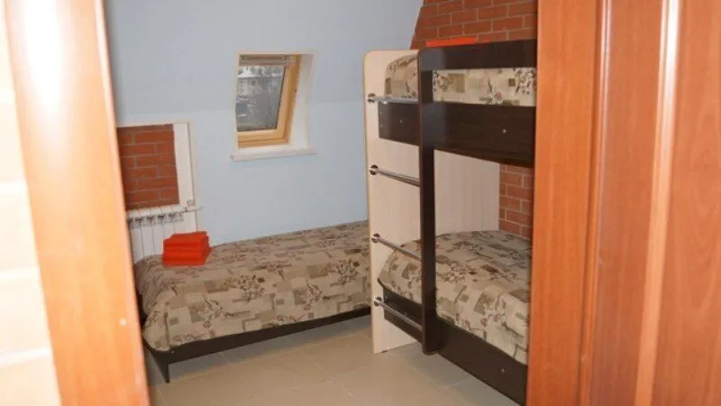 В коттедже отдельные комнаты-спальни, каждая рассчитана для двух человек. Есть комнаты с раздельными кроватями, есть с двуспальной кроватью.