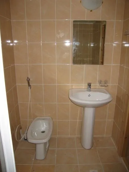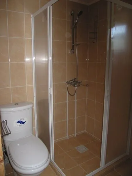 Санузел с душевой кабинкой и биде.