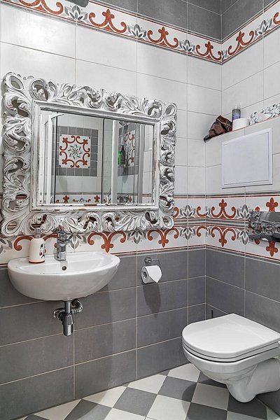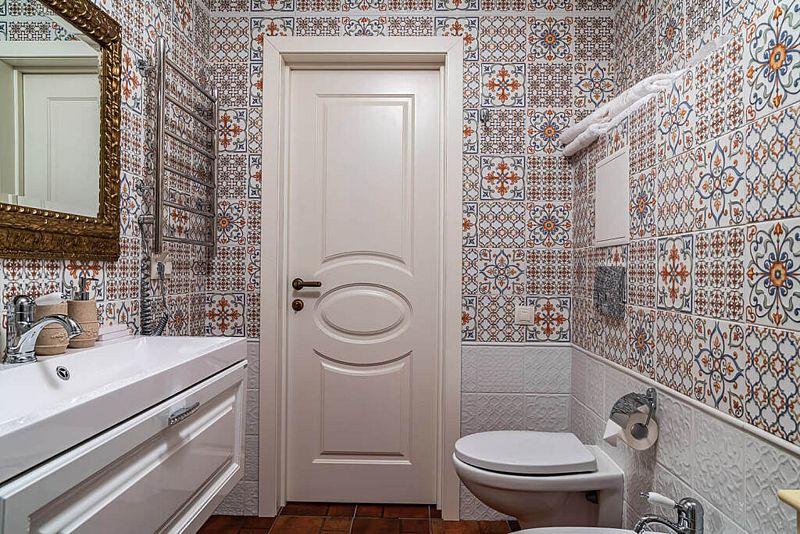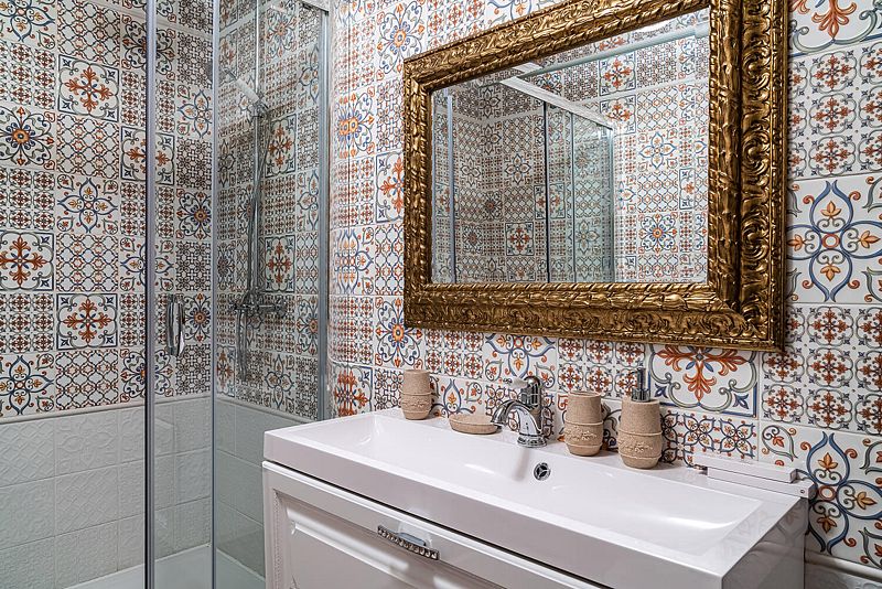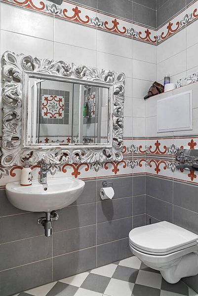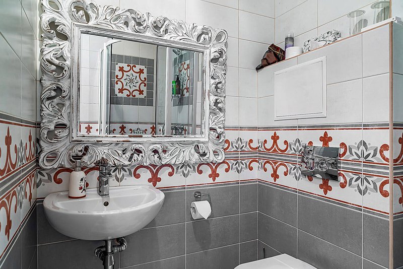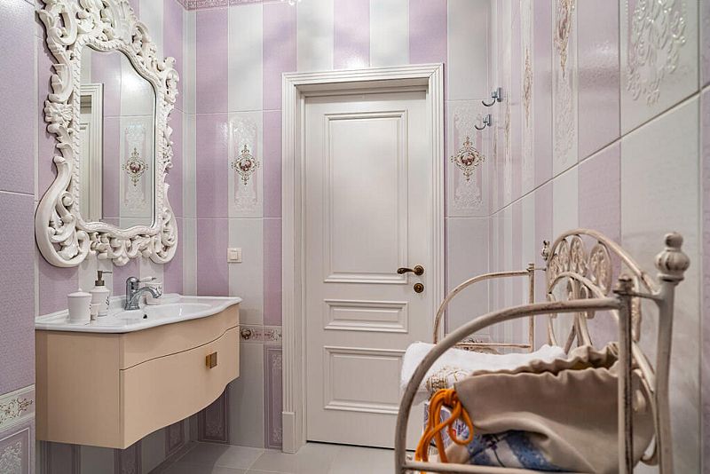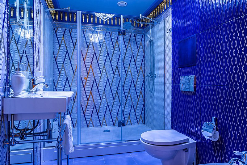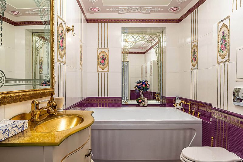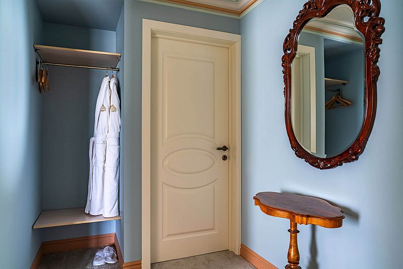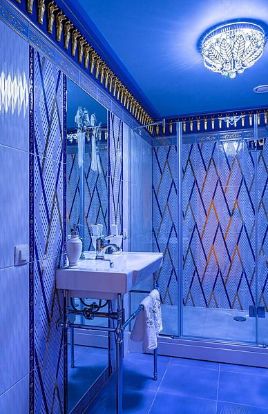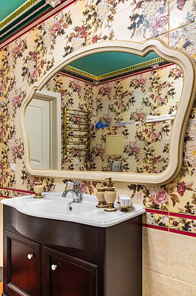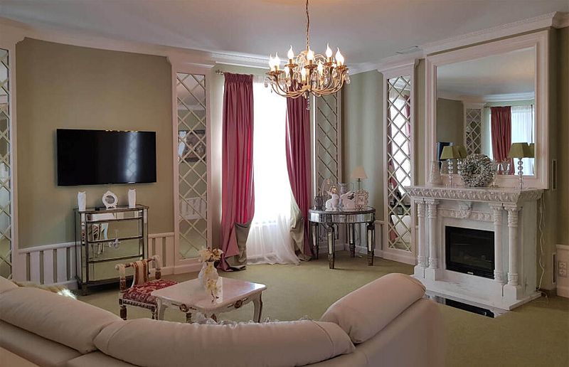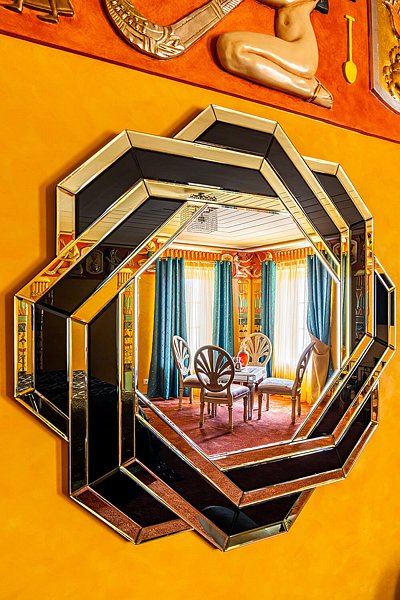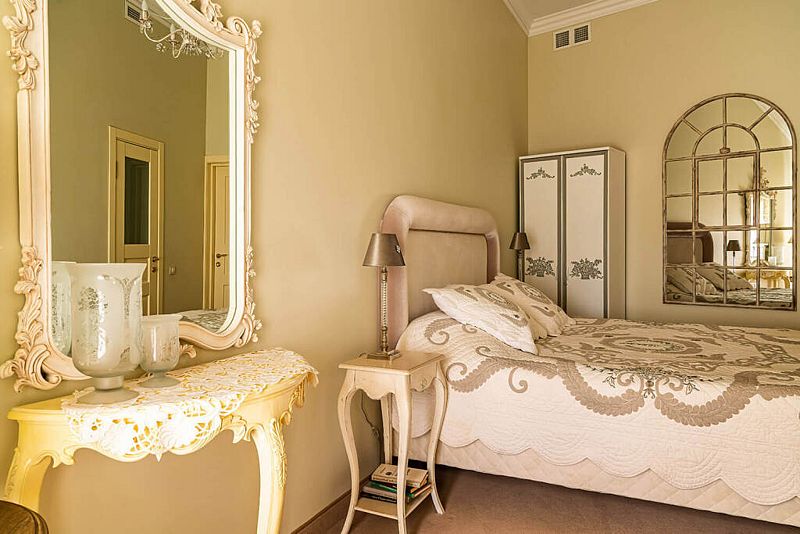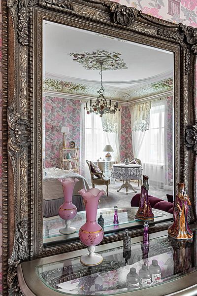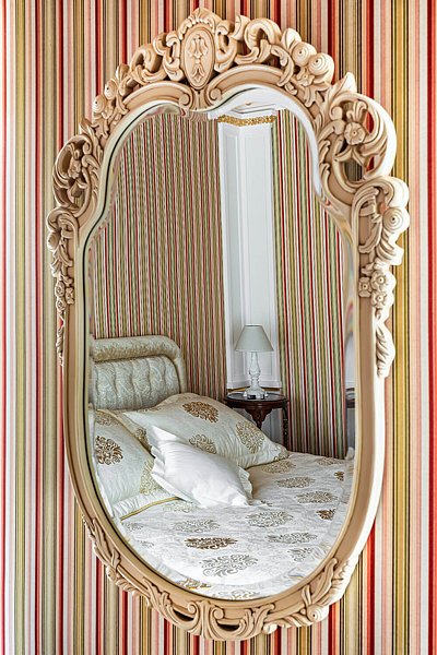 Оформление этого номера отличается от всех других тем, что особую роль в убранстве помещений играют зеркала. Их расположение продумано таким образом, что они преображаю пространство, создавая непривычные глазу линии.