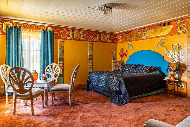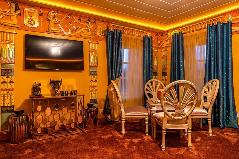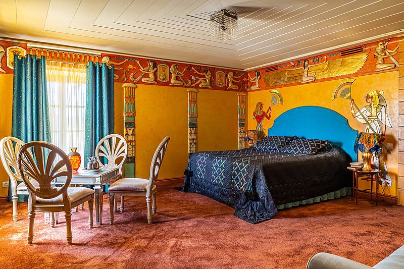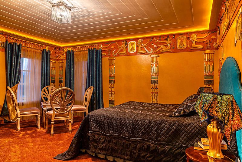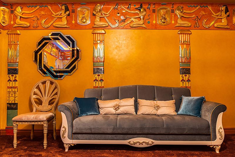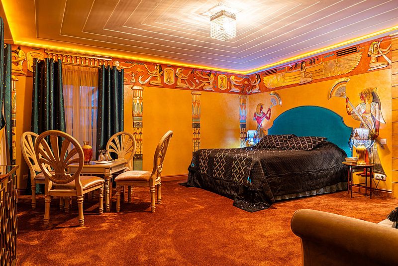 Египет— страна, где всегда светит солнце; чарующий и манящий край с великим наследием древних цивилизаций. Красота, укрытая лёгкой вуалью таинственности и загадочности. Именно это и было привнесено в оформление номера. Символические детали: сфинксы, пирамиды, фараоны, лотосы; особая геометрия узоров, цвет золота в отделке и ткани создают яркий и неповторимый стиль.