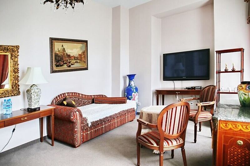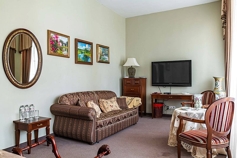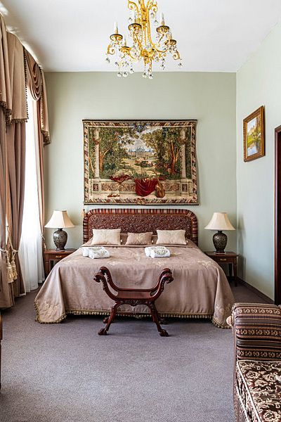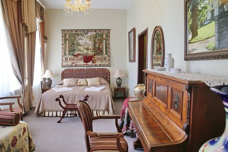 Каждый предмет интерьера подобран таким образом, чтобы гармонично соответствовать всей обстановке, а главное — духу эпохи. Этот просторный номер идеально подходит для отдыха по самым высоким стандартам в компании самых близких людей.