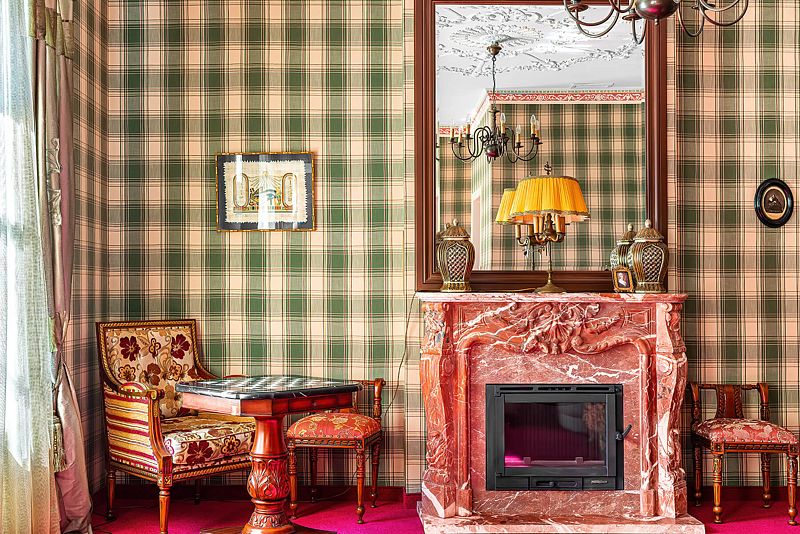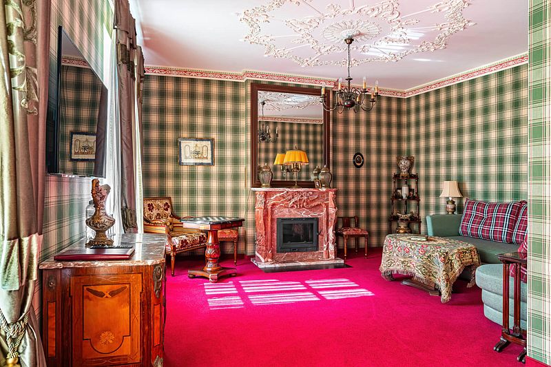 Классическая клетка и строгий изыск в интерьере — главное, чем отличается этот номер усадьбы Марьино, являющийся одним из самых роскошных среди всех предлагаемых для отдыха помещений. Как нельзя лучше убранство номера дополняет открывающийся из окна великолепный вид на парк, созданный в лучших английских традициях.