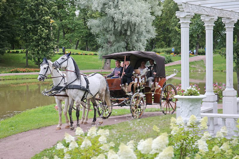 Вы сможете совершить прогулку на английской карете по парку, прокатиться верхом на лошади по окрестностям, посадить именное дерево, посетить страусиную ферму, картинную галерею, осмотреть выставку старинных экипажей, саней и принять участие в празднествах.