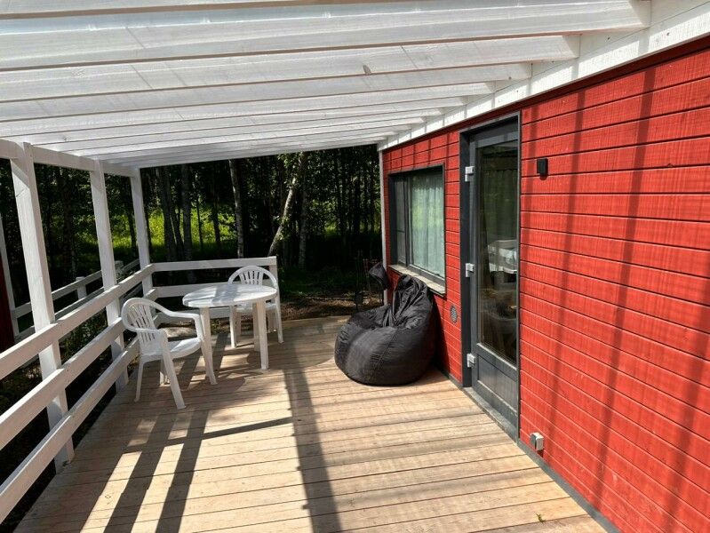 Крытая терраса площадью 15 м со столом и стульями; индивидуальная зона за домом; костровая зона с костровой чашей, креслами, набором для гриля и шашлыка