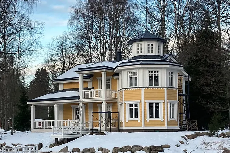 Сегодня лучшие специалисты и реставраторы из Выборга и Санкт-Петербурга приступили к реставрации главного здания. Внутри здания можно увидеть стенды с историческими фотографиями дома и его владельцев, а также уникальные печи с потрясающими орнаментами и изображениями животных, которые были изготовлены в 19 веке.