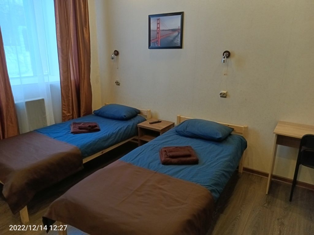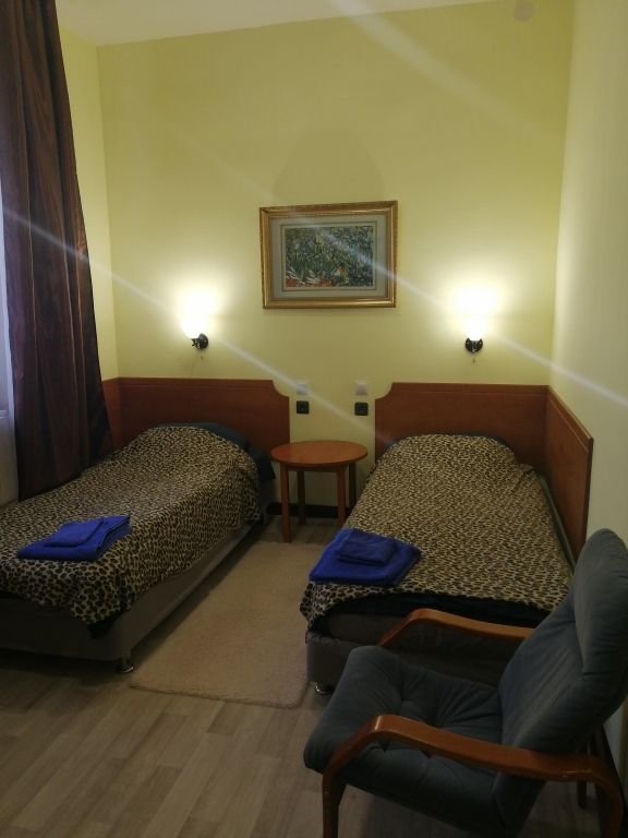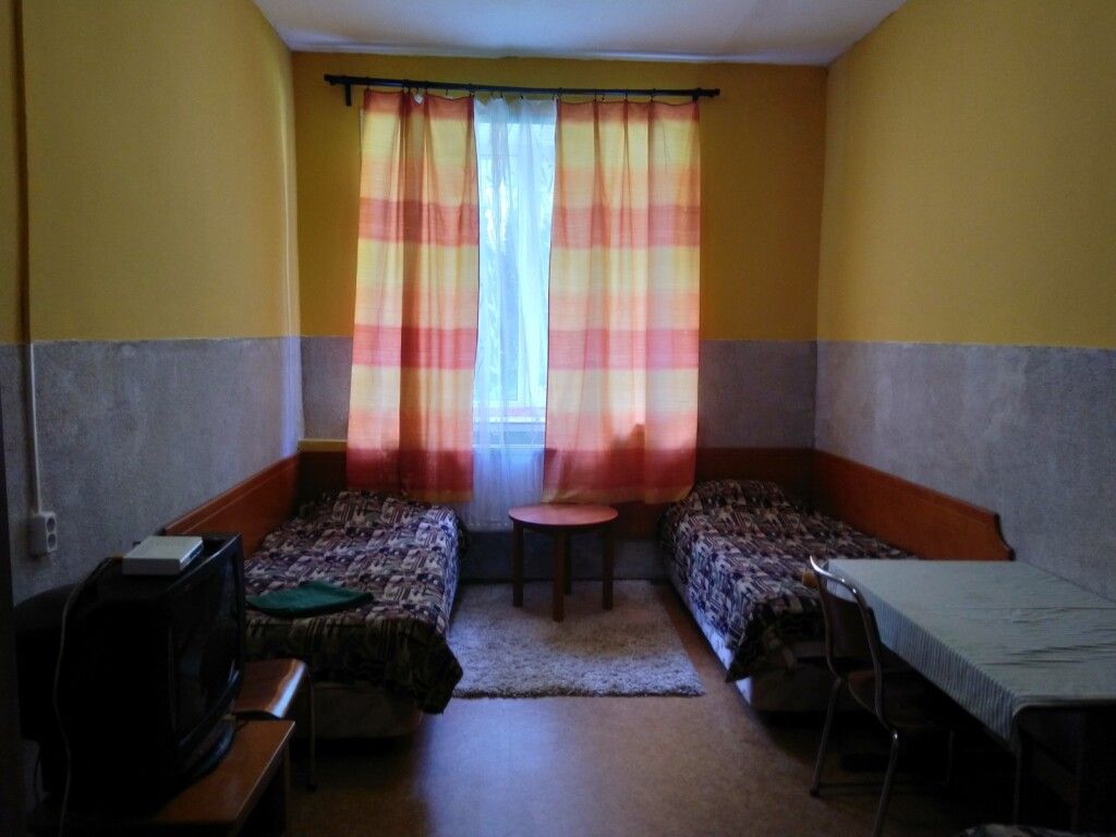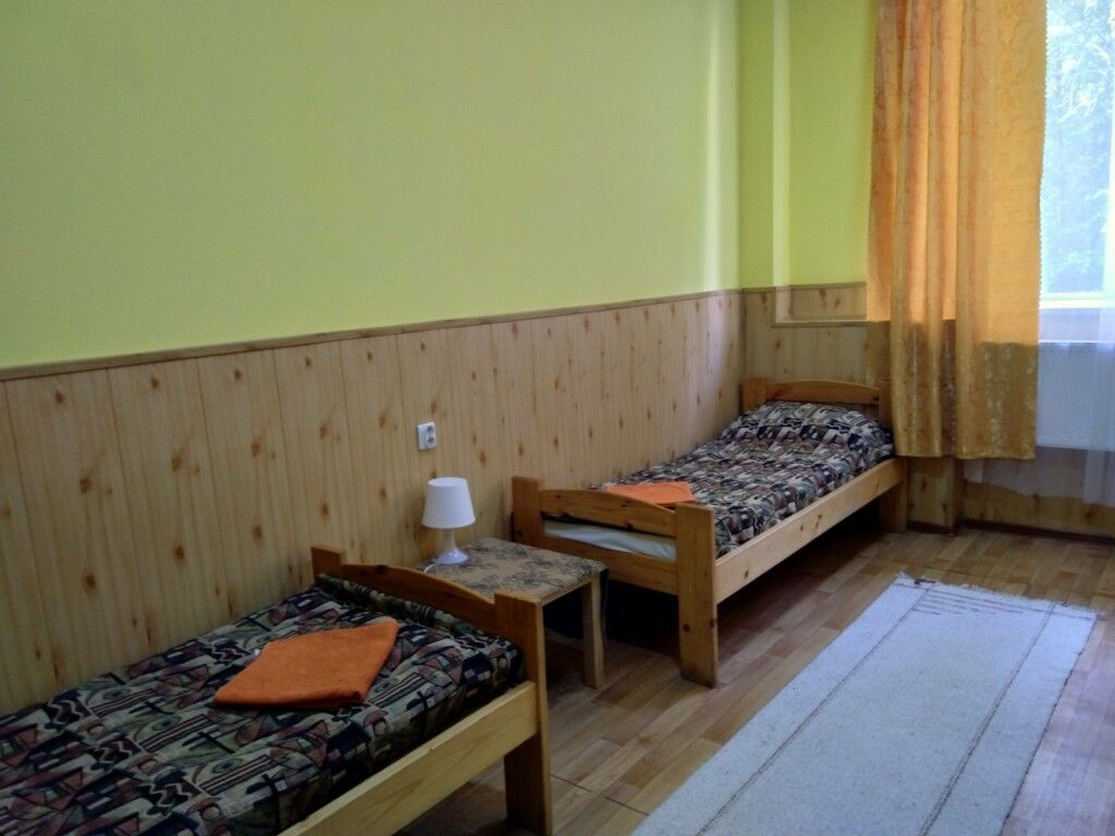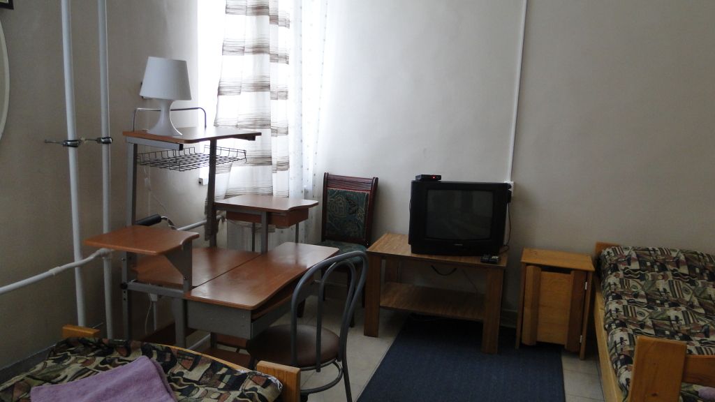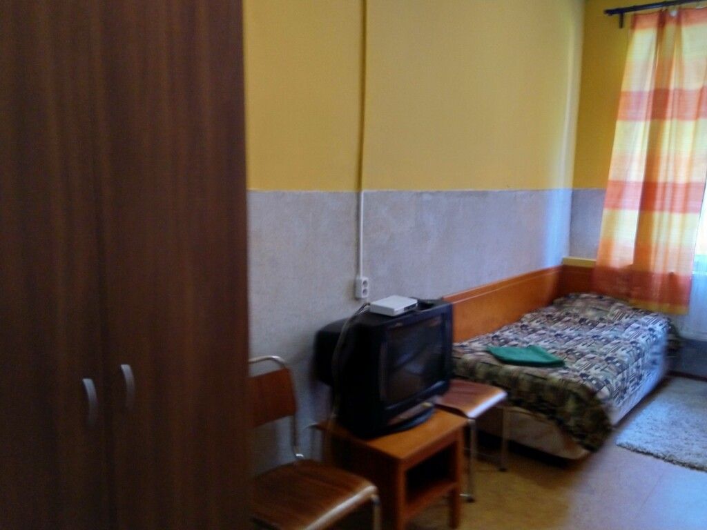 Просторные номера стандартной планировки, дизайн выполнен в светлых тонах. В номере две кровати, шкаф, тумбочка, телевизор. Душ и туалет НА ЭТАЖЕ.