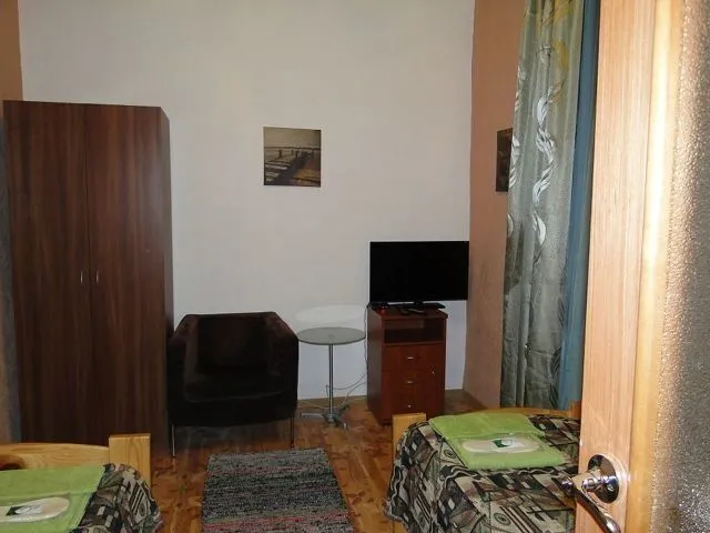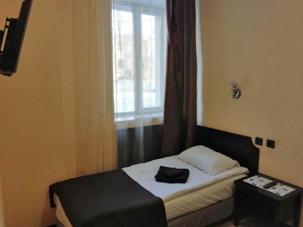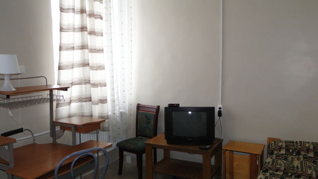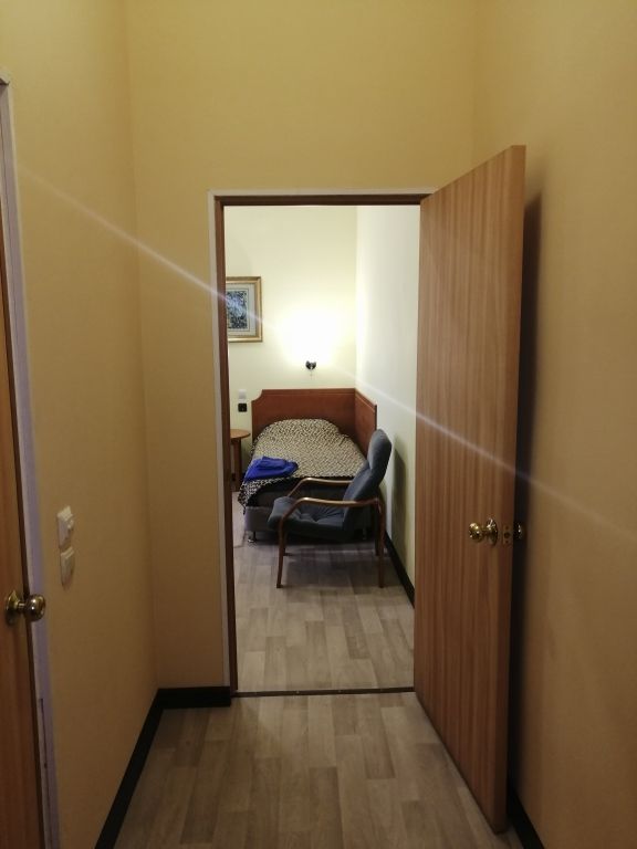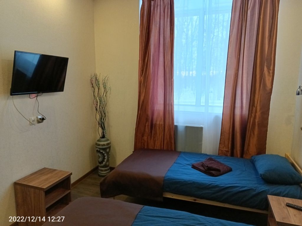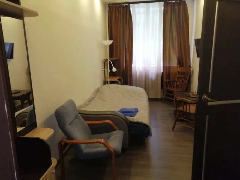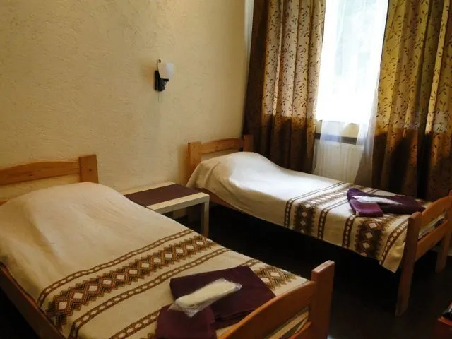 Просторные номера стандартной планировки, дизайн выполнен в светлых тонах. В номере две кровати, шкаф, тумбочка, телевизор. Душ и туалет НА ЭТАЖЕ.