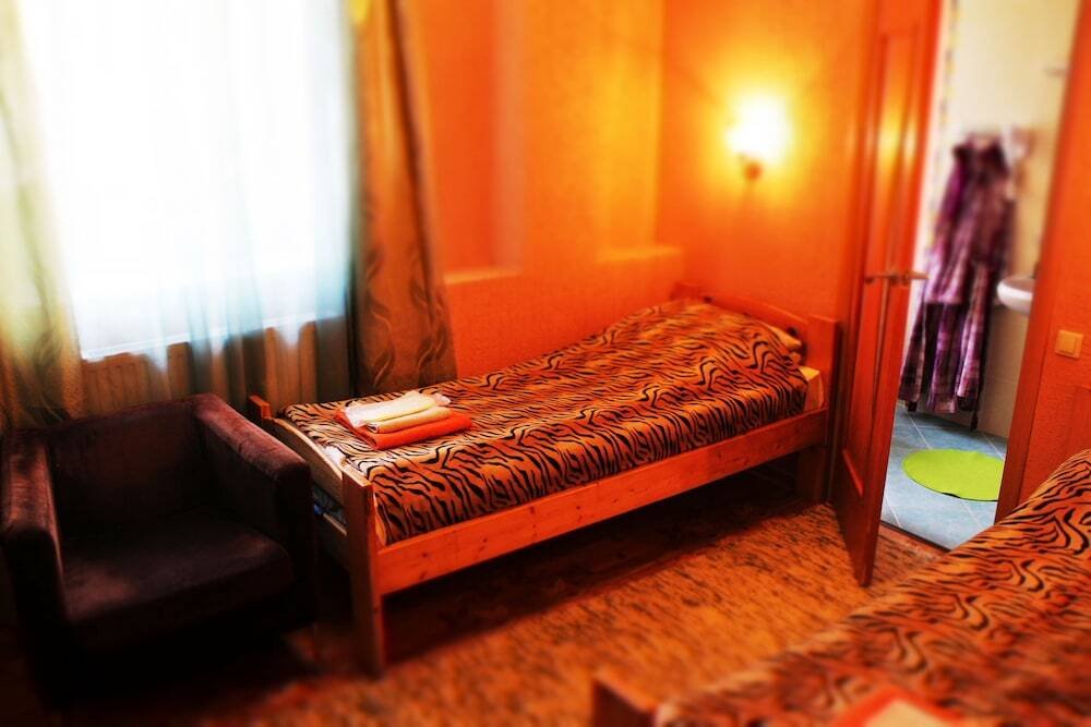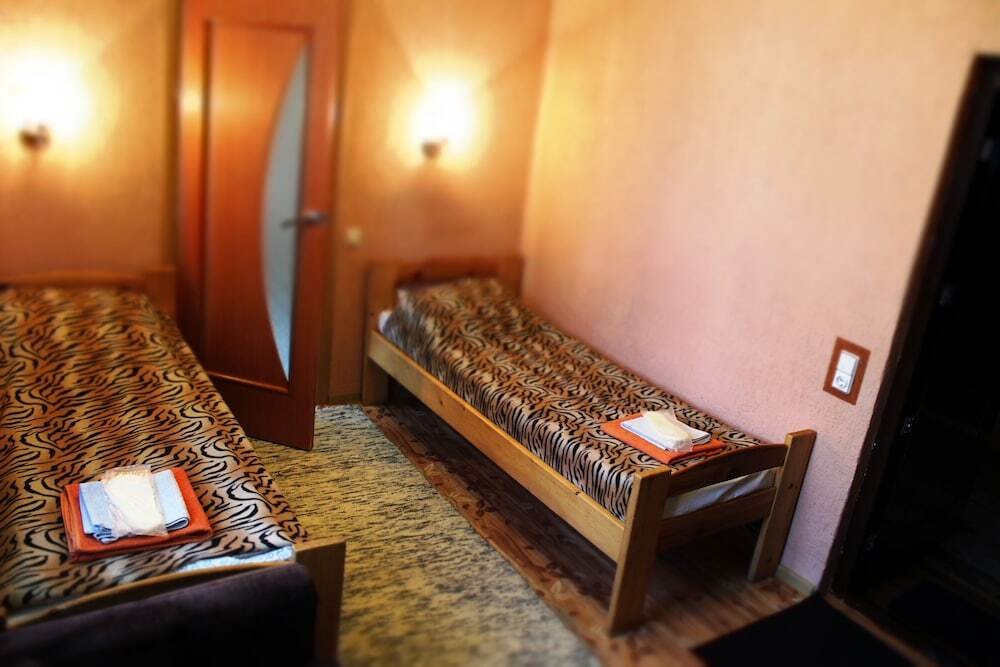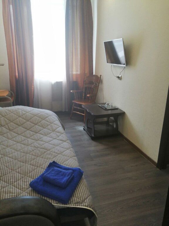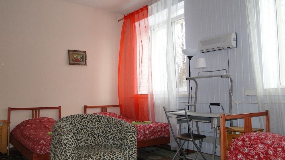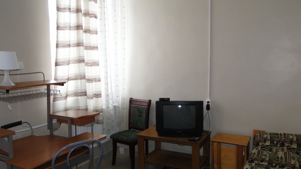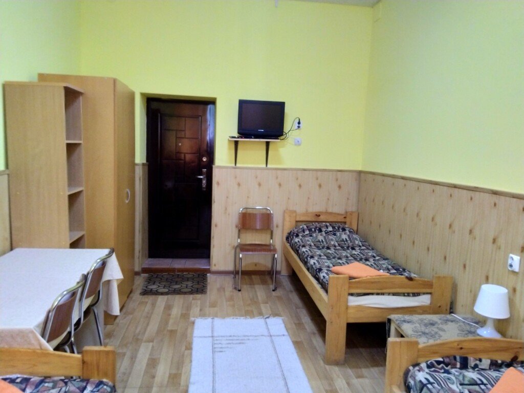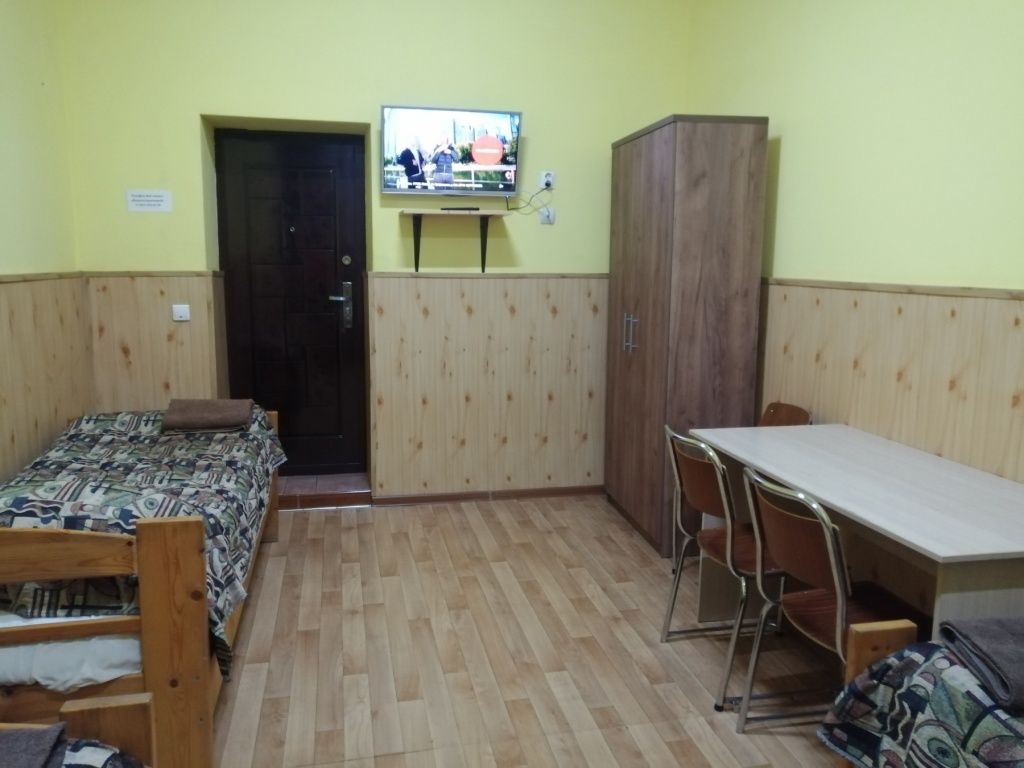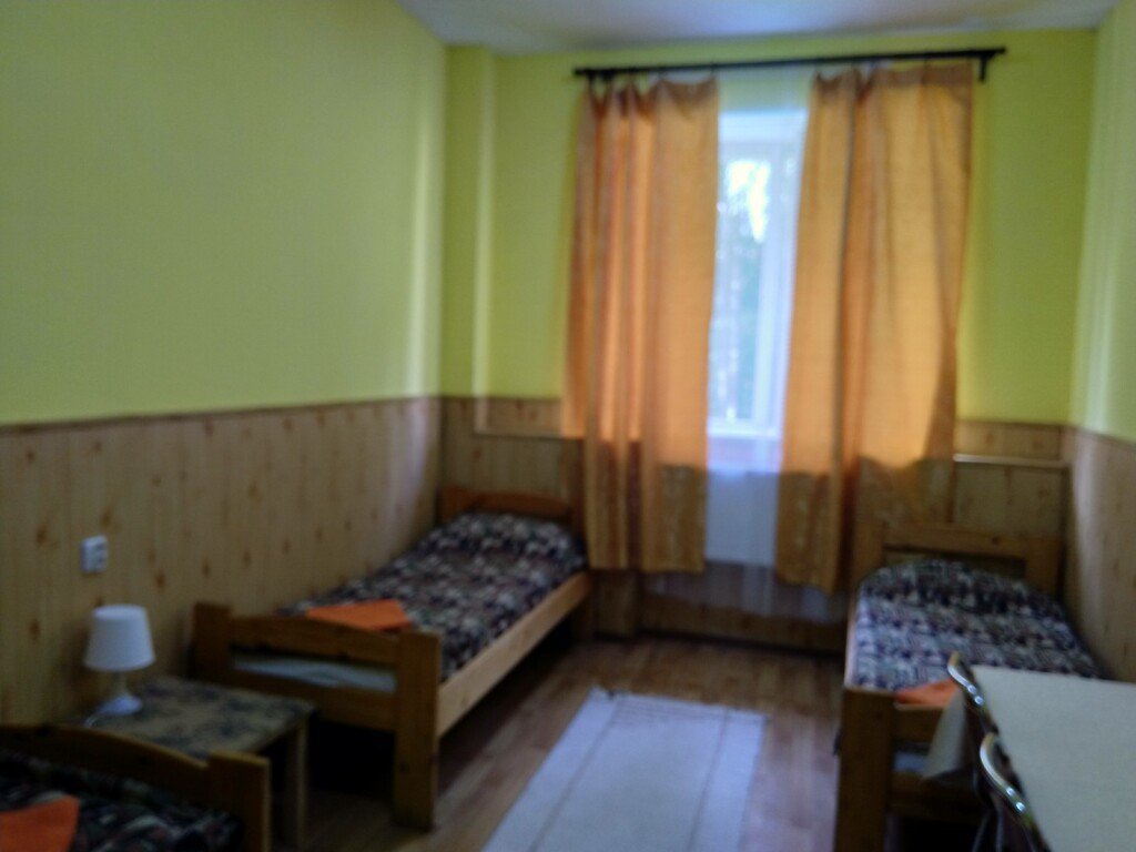 Просторные номера стандартной планировки, дизайн выполнен в светлых тонах. В номере три кровати, шкаф, тумбочка, телевизор. Душ и туалет НА ЭТАЖЕ.