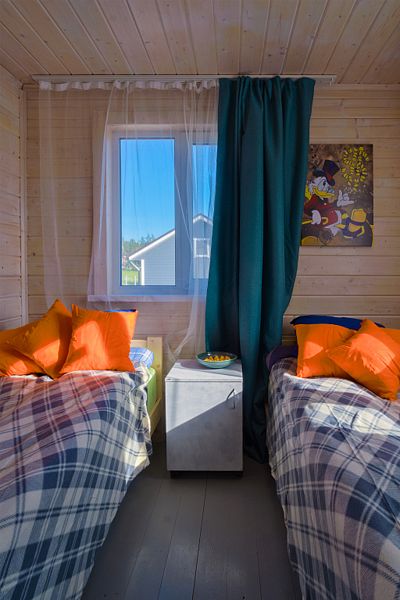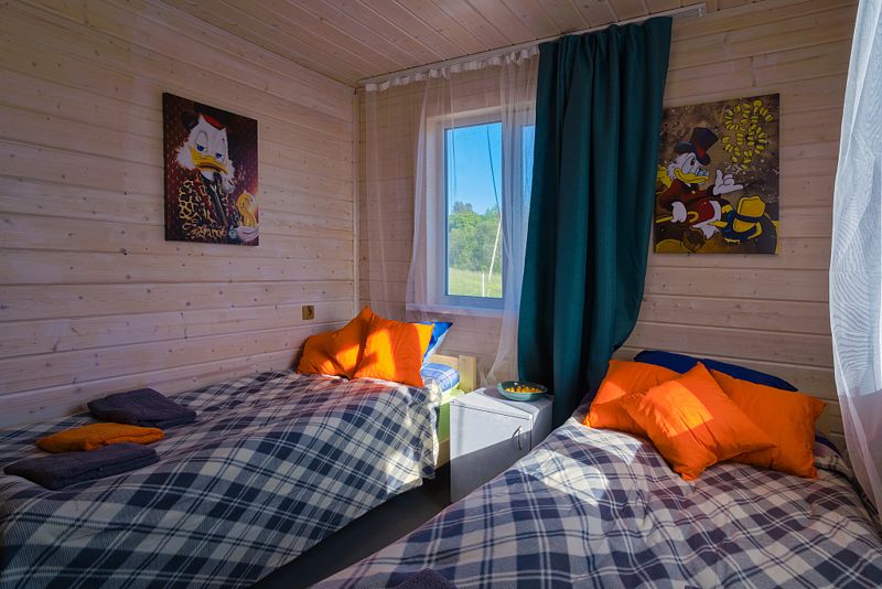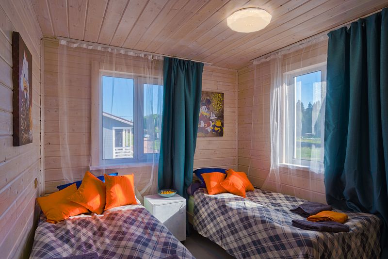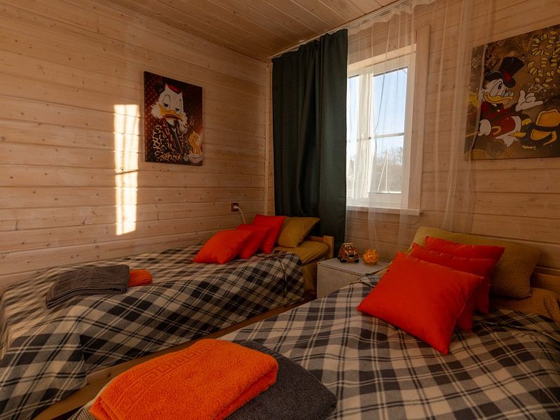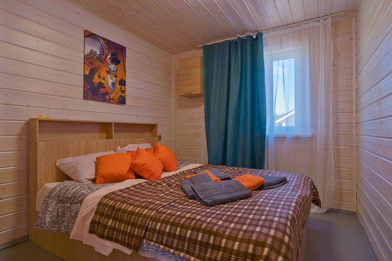 Малый дом у озера, две комнаты одна двухспальная кровать и один двухспальный диван.