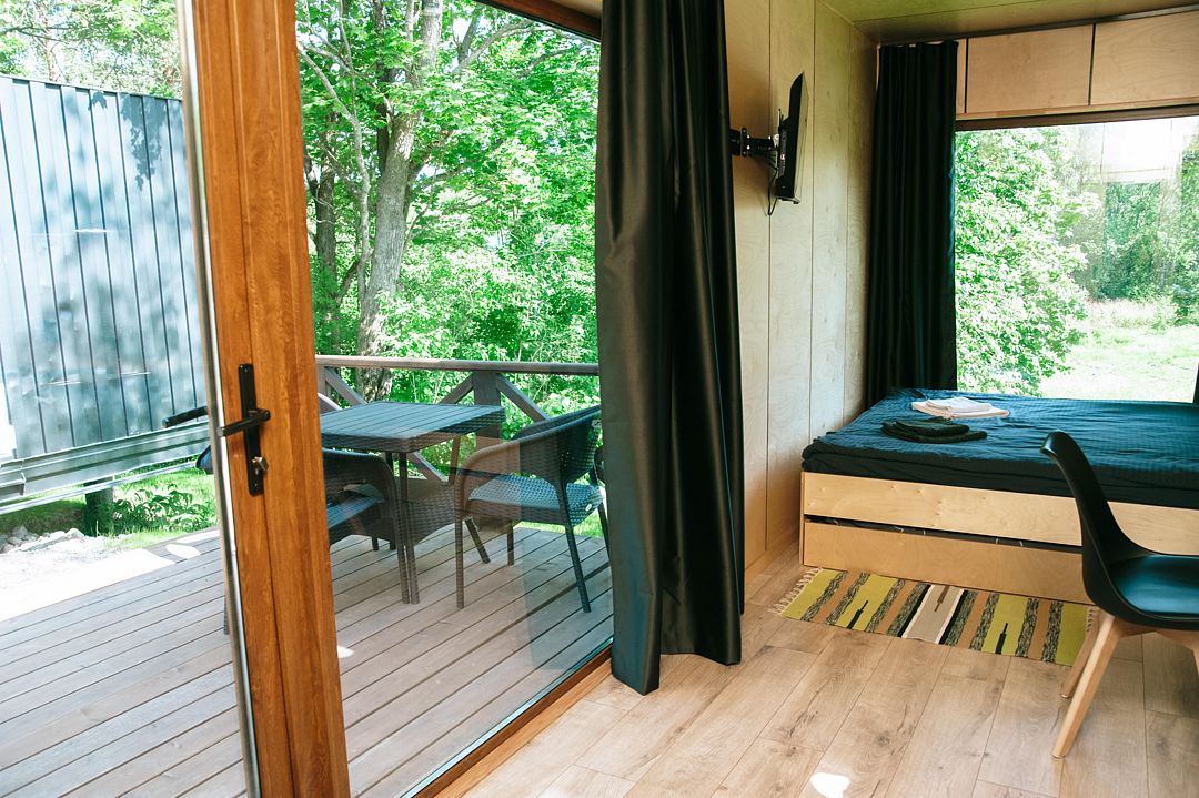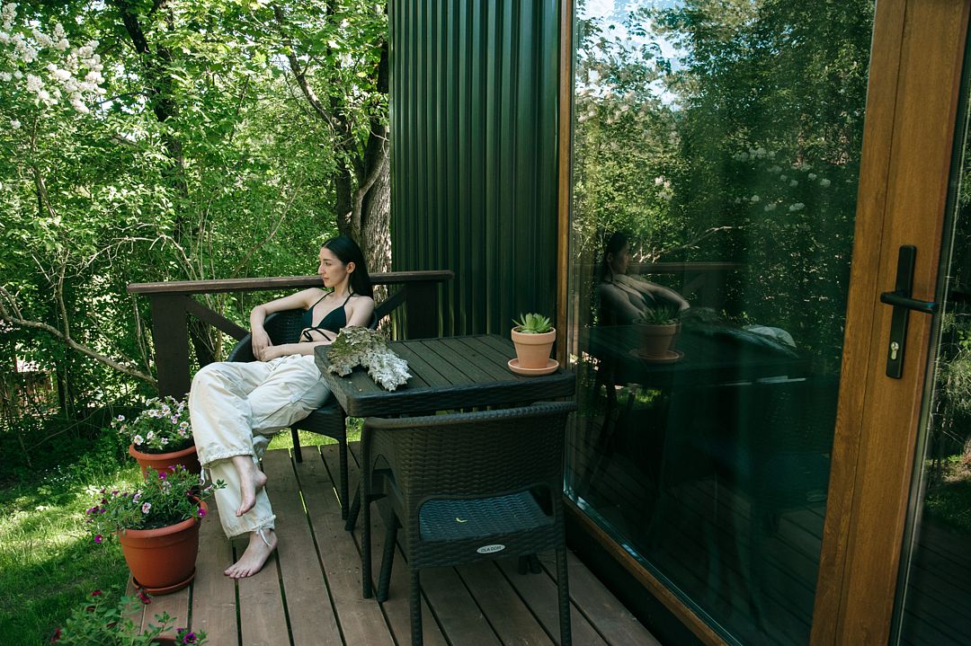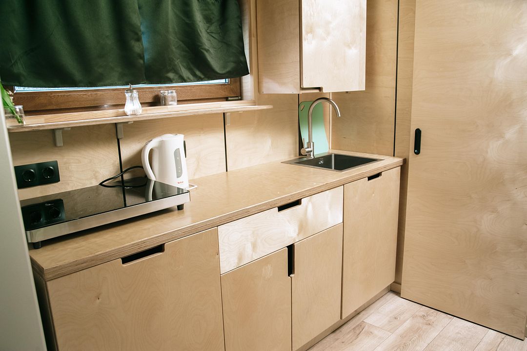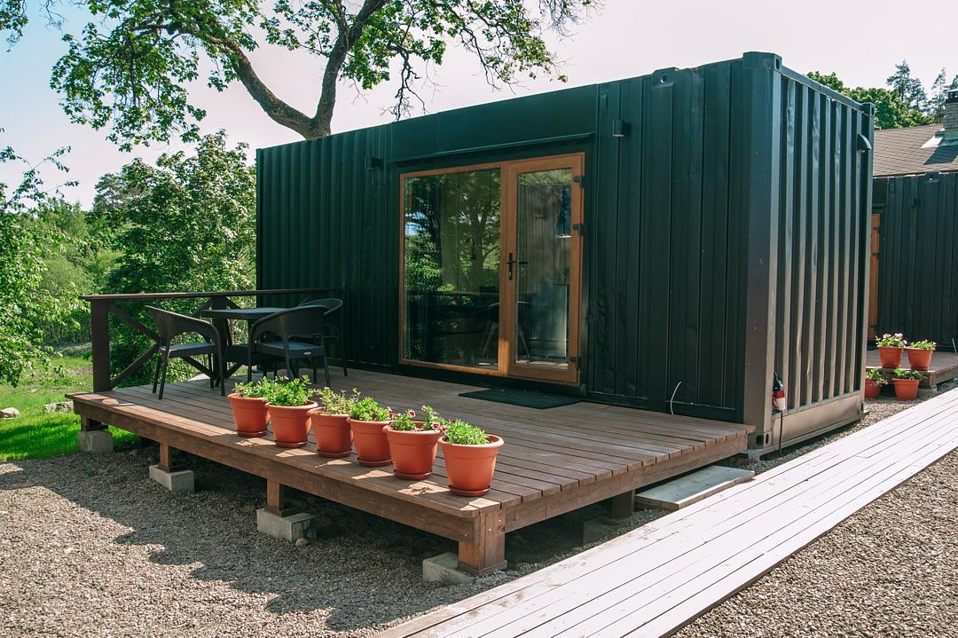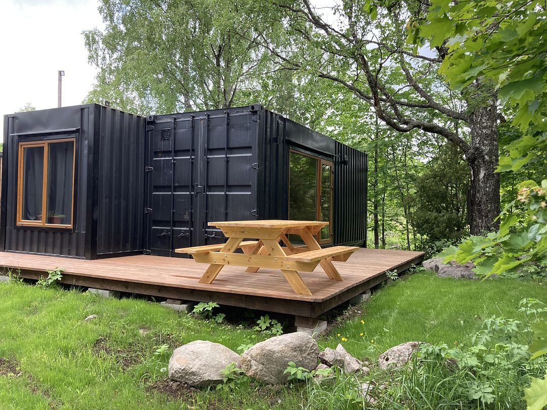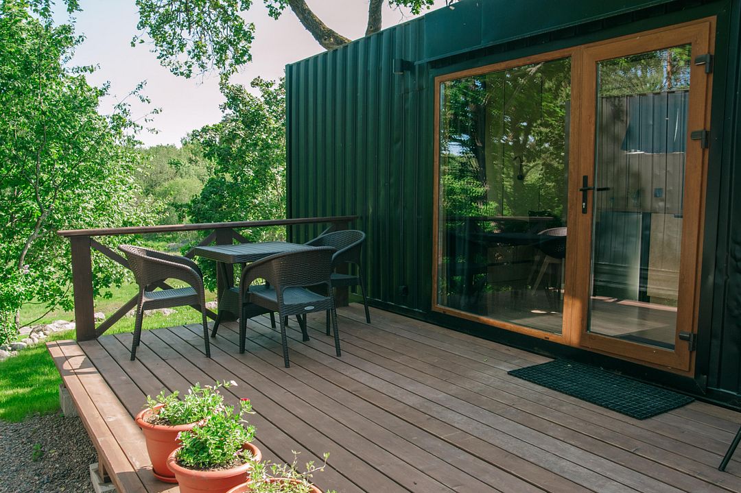 Стильный дом-контейнер с открытой террасой, сочетающий безусловный комфорт и функциональный минимализм вместимостью до 3-х человек (2 взрослых и ребенок до 12 лет)