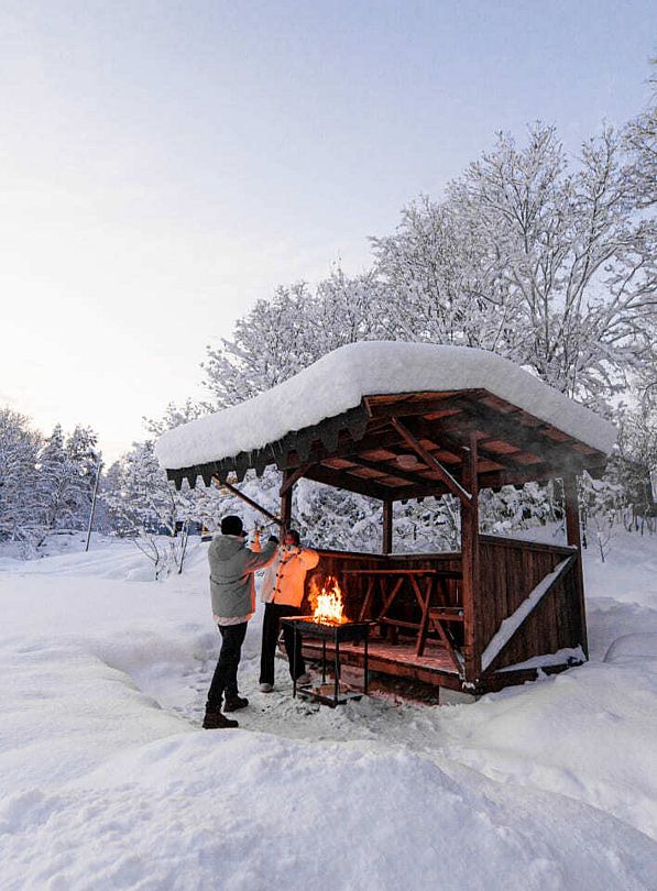 Зимой можно покататься на снежных ватрушках или поиграть в настольные игры с чашкой ароматного чая и домашними угощениями. В доме-гостиной царит атмосфера домашнего уюта: поспите на русской печи, насладитесь моментами с близкими и побалуйте себя традиционными блюдами, такими как легендарная томленая каша или щи.