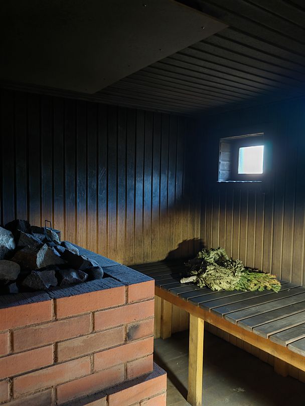 За русским колоритом и древними традициями — в баню по-чёрному. Здесь густой аромат березовых дров, просторная парная. Баня по-черному топится 5-6 часов, она черная от сажи, но чистая и запах стоит фантастический и еще и правильный, с хворью разной борется. И удовольствие, и польза.