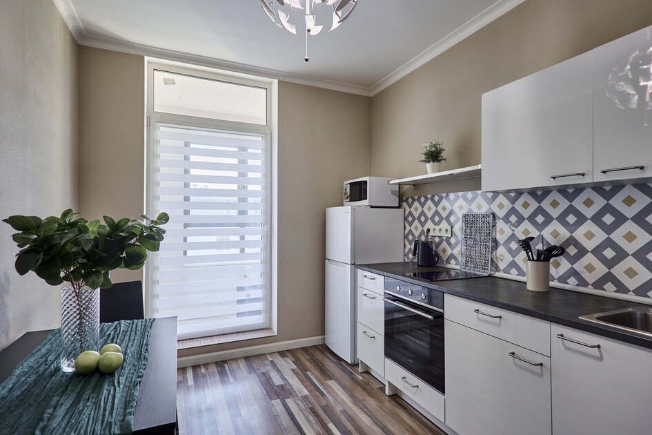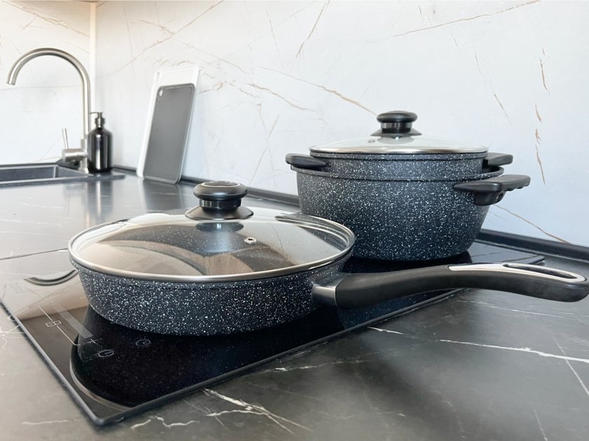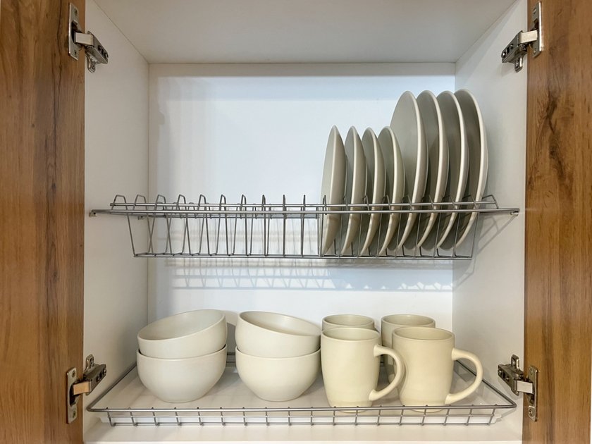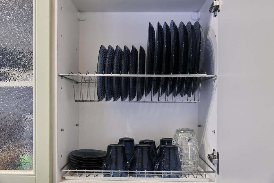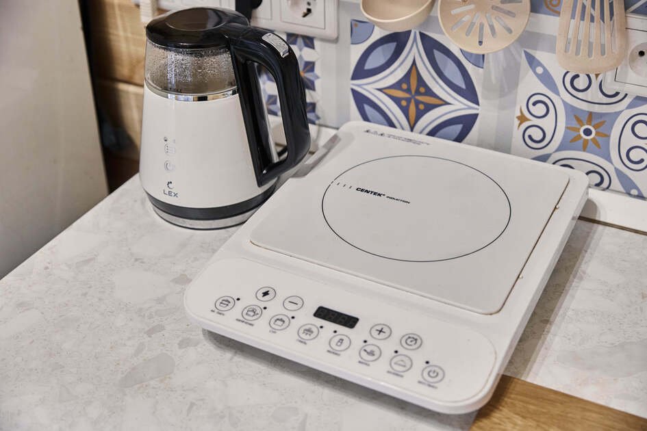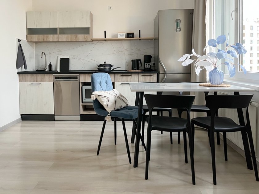 - на кухне есть все, что нужно для приготовления еды: вилки, кастрюли, сковородки, чайник, кофемашина, холодильник, кухонная мебель и т.д.;