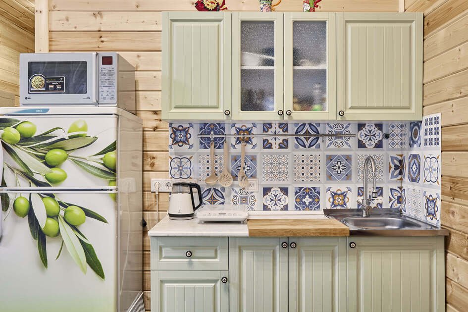 - на кухне есть все, что нужно для приготовления еды: вилки, кастрюли, сковородки, чайник, холодильник, кухонная мебель и т.д;