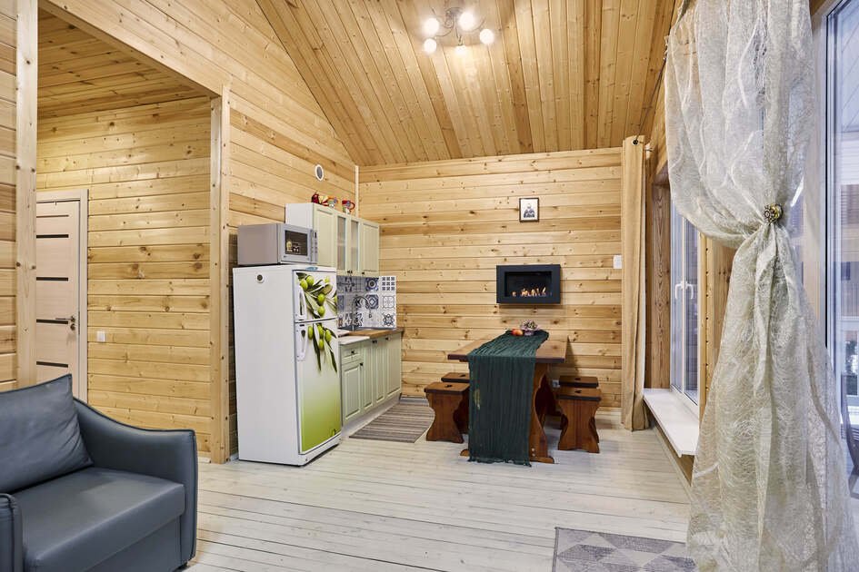 Дома сдаются вместе с сауной. Стоимость сауны фиксирована — 4000 ₽ за весь срок проживания (независимо от длительности бронирования).