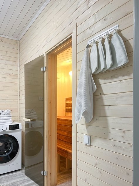 Сауна находится в Доме с сауной у залива и в Сканди доме с фотозонами и сауной у залива.